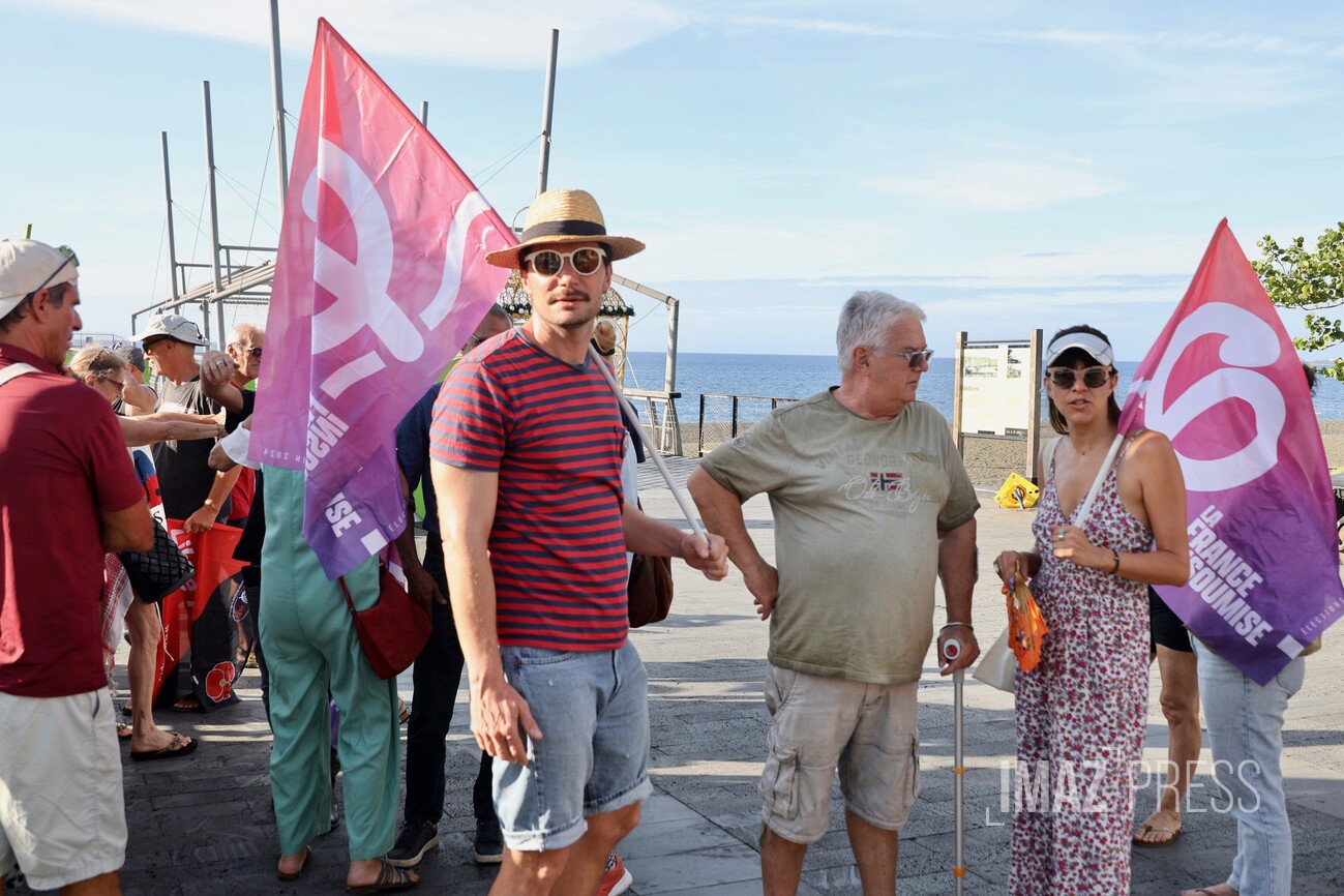 Ce lundi 5 janvier 2026, La Réunion Insoumise (LFI 974) a appelé à un rassemblement de soutien et de solidarité envers le peuple vénézuélien, suite à l'attaque des Etats-Unis survenue ce week-end. Quelques dizaines de personnes se sont rassemblées au Débarcadère de Saint-Paul pour dénoncer l'agression militaire ordonnée par Donald Trump. (Photo Photo sly/www.imazpress.com)