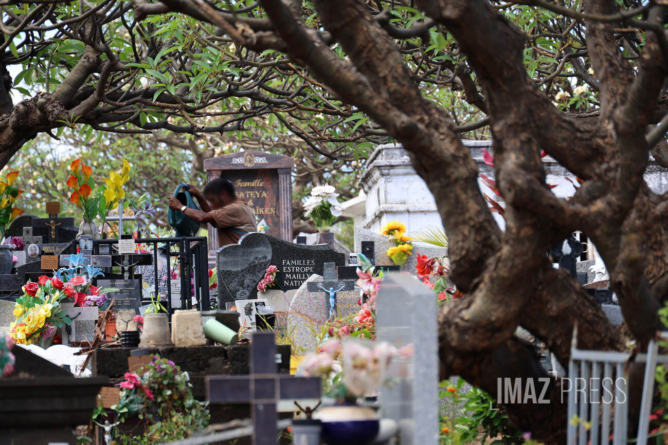 Ce samedi 1er novembre 2025, La Réunion célèbre la Toussaint, journée de recueillement et de mémoire. Comme chaque année, nombreux sont celles et ceux qui se rendent dans les cimetières de l'île pour fleurir les tombes et honorer leurs défunts (Photo : rb/www.imazpress.com)