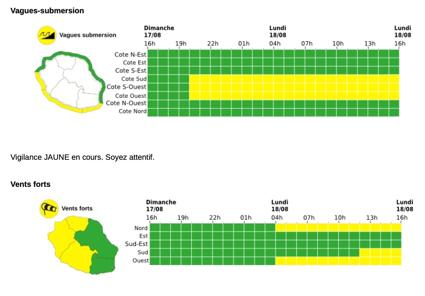 Le temps va être dégradé ce lundi 18 août 2025 à La Réunion, avec l'arrivée d'un nouveau front froid. Tandis qu'un avis de vigilance jaune vagues-submersion sera valable à partir de 20 heures ce dimanche de la Pointe des Aigrettes à la Pointe de la Table, le nord, l'ouest et le sud seront aussi placés en vigilance jaune vents forts dans la nuit. Enfin, un avis de vigilance jaune fortes pluies concernera l'est et le sud-est à partir de minuit. (Photo d'illustration rb/www.imazpress.com)