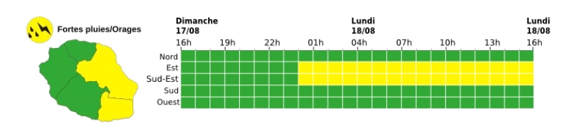 "Le temps reste très nuageux, humide et venteux en cette veille de rentrée scolaire. Des averses soutenues perdurent sur le massif du Volcan et les Plaines de l'Est. Elles sont nettement plus discrètes en se dirigeant vers le Nord-Ouest du département."