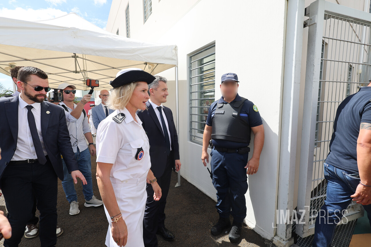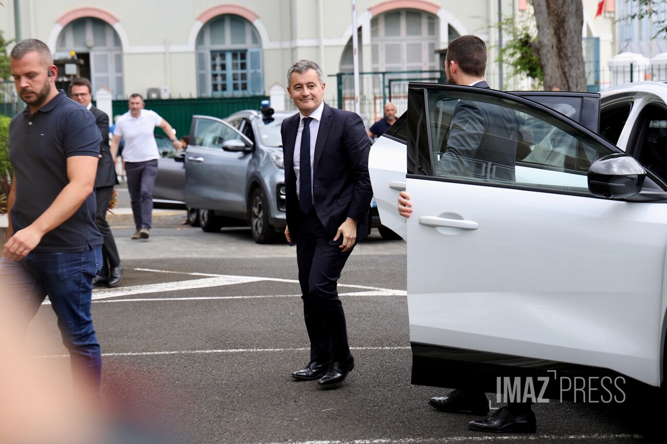 Vers 10h30, le ministre de la Justice, Gérald Darmanin, est arrivé à la Cour d'appel de Saint-Denis, avec plus de 30 minutes de retard sur le programme initial.