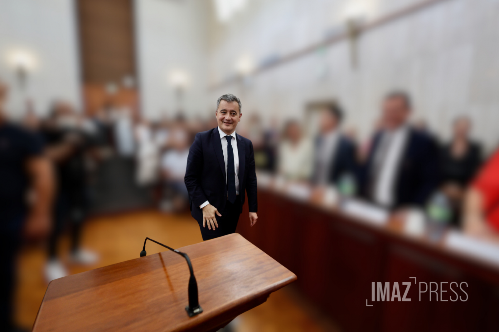 Gérald Darmanin arrive dans la salle de la Cour d’appel