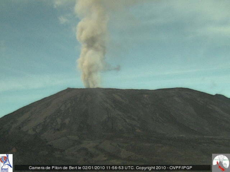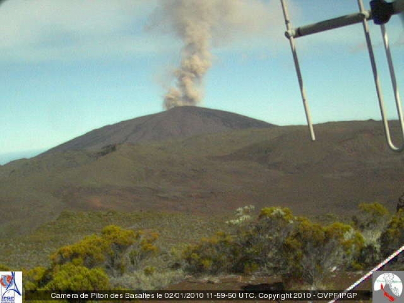 Le volcan est entré en éruption ce samedi 2 janvier 2010 vers 16 heures. Le phénomène est situé dans la falaise limitant les cratères sommitaux Bory et Dolomieu. Des coulées de lave s'écoulent à l'intérieur du Dolomieu. Au cours de leur reconnaissance aérienne, les volcanologues ont aussi constaté des éboulements des falaises internes du Dolomieu. Ces effondrements alimentent en cendres un panache de gaz éruptif s'élevant au-dessus des cratères sommitaux. L'alerte 2 du plan volcan a été déclenchée par la préfecture. L'accès à l'enclos est interdit au public. Visionnez toutes les photos de l'éruption réalisées ce samedi après-midi.
