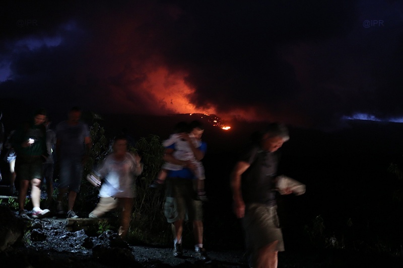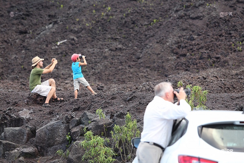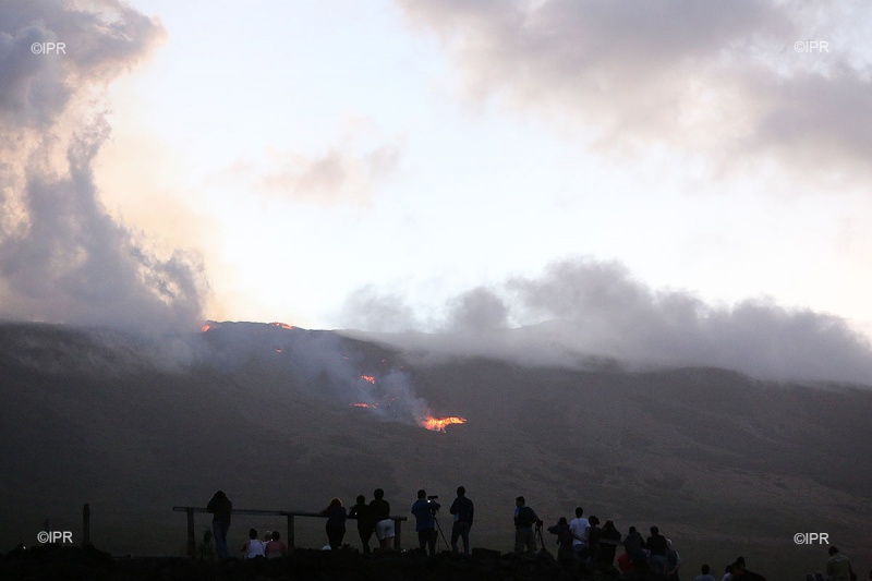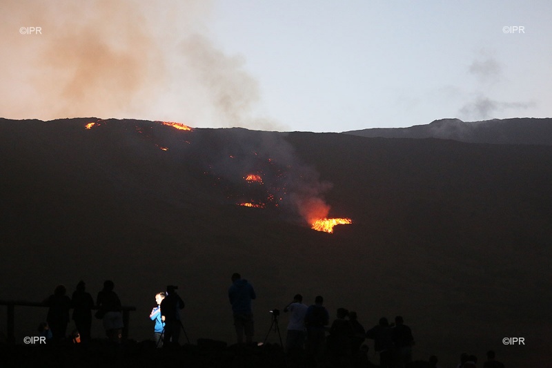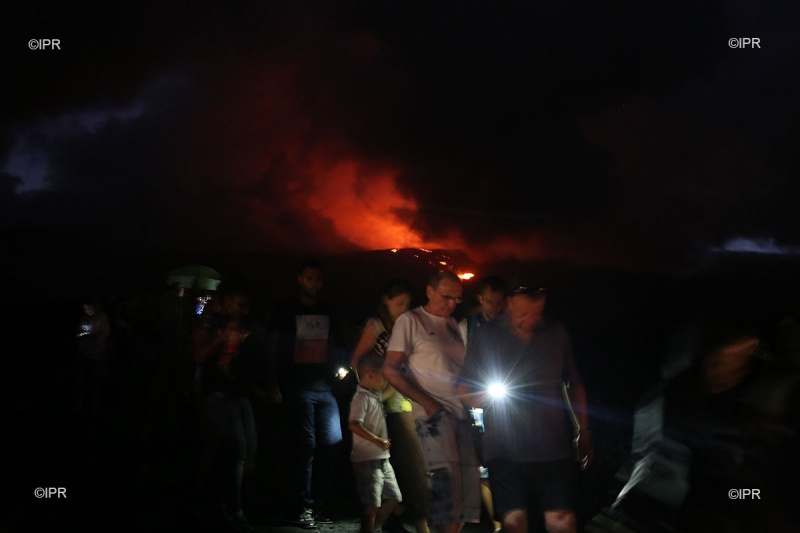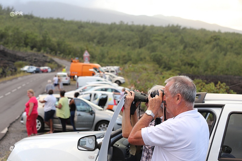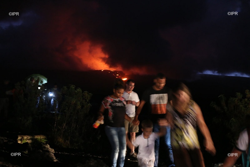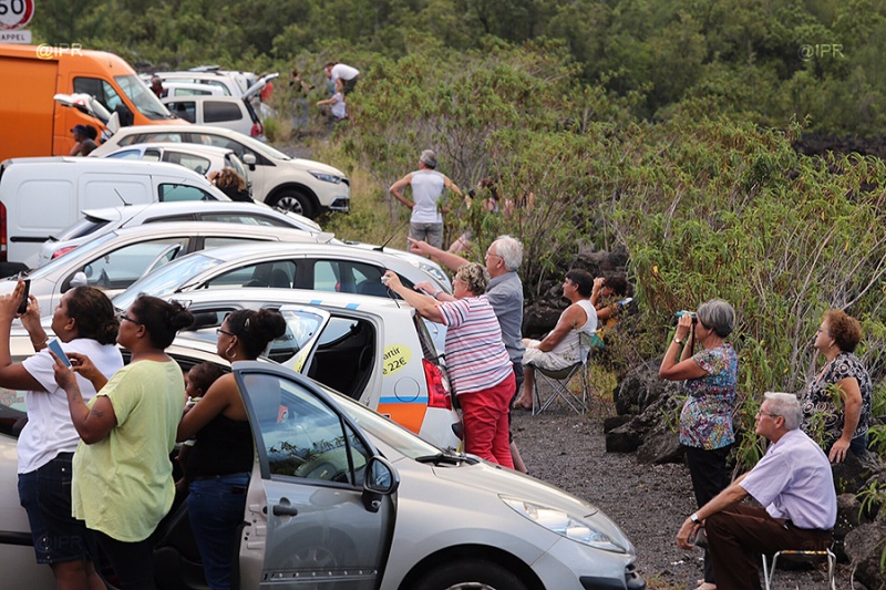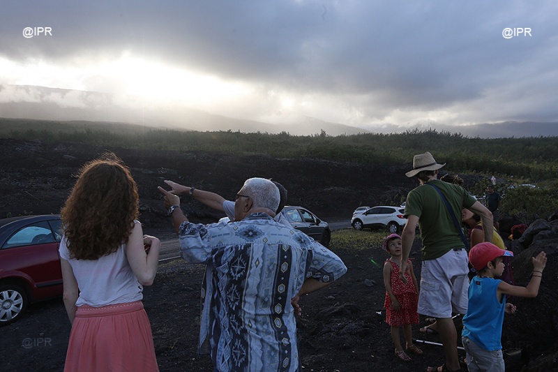 Comme un Réunionnais averti en vaut deux, plus d'une centaine de personnes se sont réunies spontanément au bas des grandes pentes du volcan, entre Bois Blanc et le Tremblet. Sur le site de l'ancienne coulée de 2007, touristes et locaux se sont rencontrés pour admirer la nouvelle éruption du Piton de la Fournaise et faire dos à la mer.