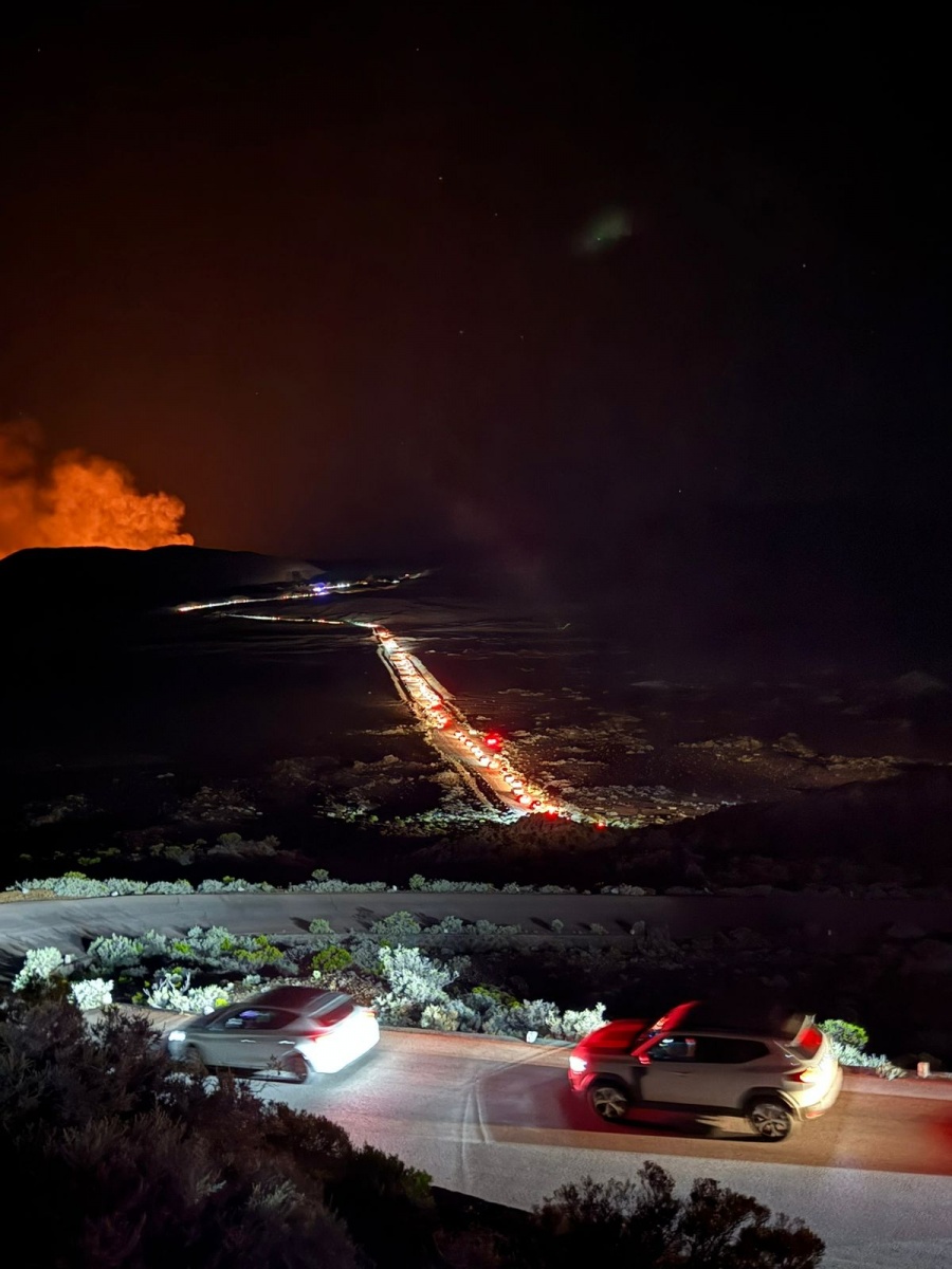 Le Piton de la Fournaise est éruption ce dimanche 18 janvier 2026 à 19h45. Au repos durant plus de deux ans, il n'aura fallu que peu de temps au public pour se diriger en masse vers le Pas de Bellecombe pour apprécier le spectacle, créant d'importants embouteillages sur la Plaine des Sables et même jusqu'à la Cité du Volcan. Il aura fallu pour certains automobilistes, jusqu'à 5 à 6 heures pour parcourir cette route (Photo : Oliv Idos)