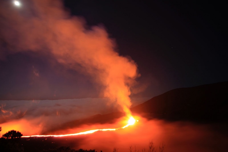 Ce sont des automobilistes qui ont affirmé, en fin d'après-midi, avoir pu apercevoir la coulée de lave du Piton de la Fournaise depuis la route du Brûlé, entre Saint-Philippe et Sainte-Rose. La lave "fraîche" suivrait le tracé d'anciennes coulées.