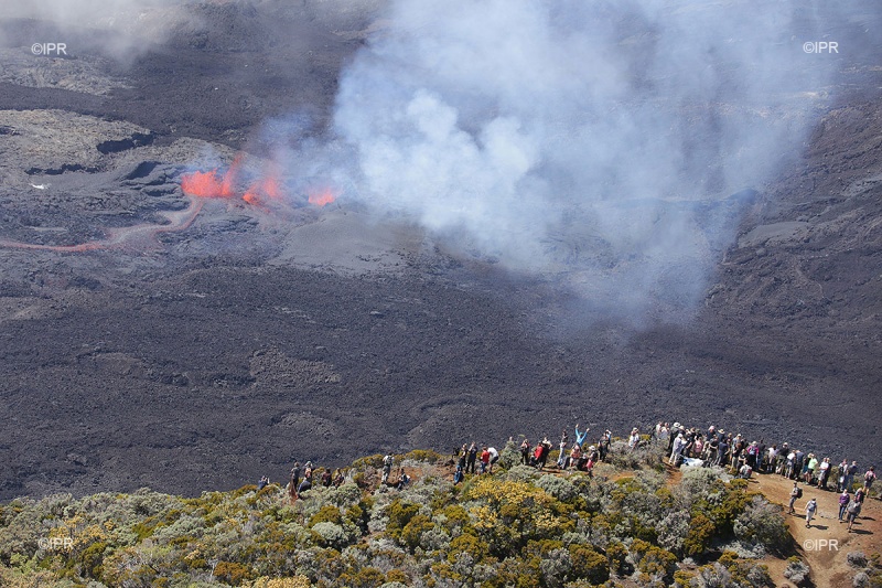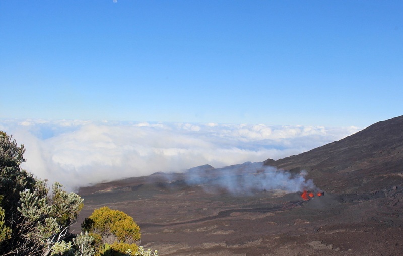 La Fournaise entame son 3e jour d'éruption, sous les nuages. Qu'il se contente de gronder ou qu'il crache des fontaines de lave, le volcan est une passion bien réunionnaise. Sa popularité, facile de la mesurer: il suffit d'observer la longueur des files de voiture au Pas de Bellecombe, le nombre d'hélicoptères dans le ciel, ou encore le flux de posts enjoués sur les réseaux sociaux. Et l'éruption qui a débuté le dimanche 11 septembre 2016, et se poursuit ce mardi, ne fait pas figure d'exception.
