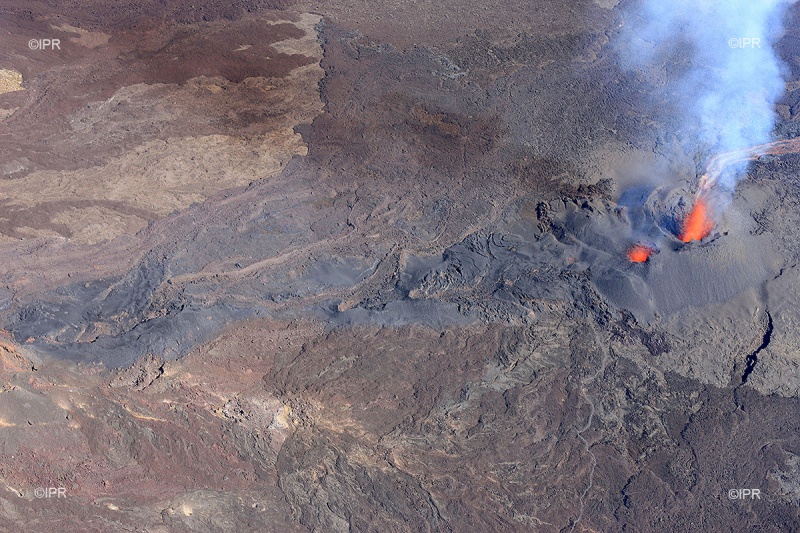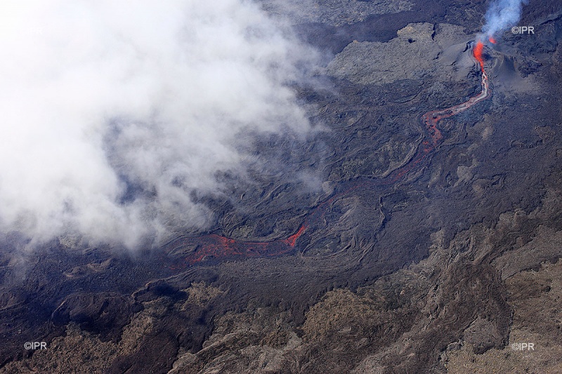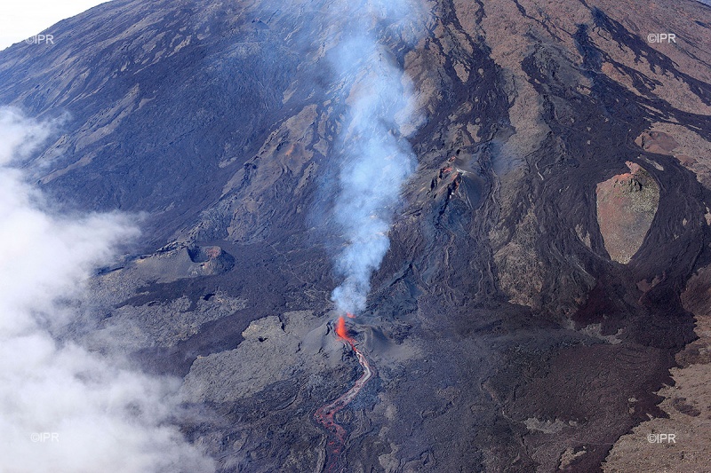 L'éruption reste visible du Pas de Bellecombe et du Piton Partage.