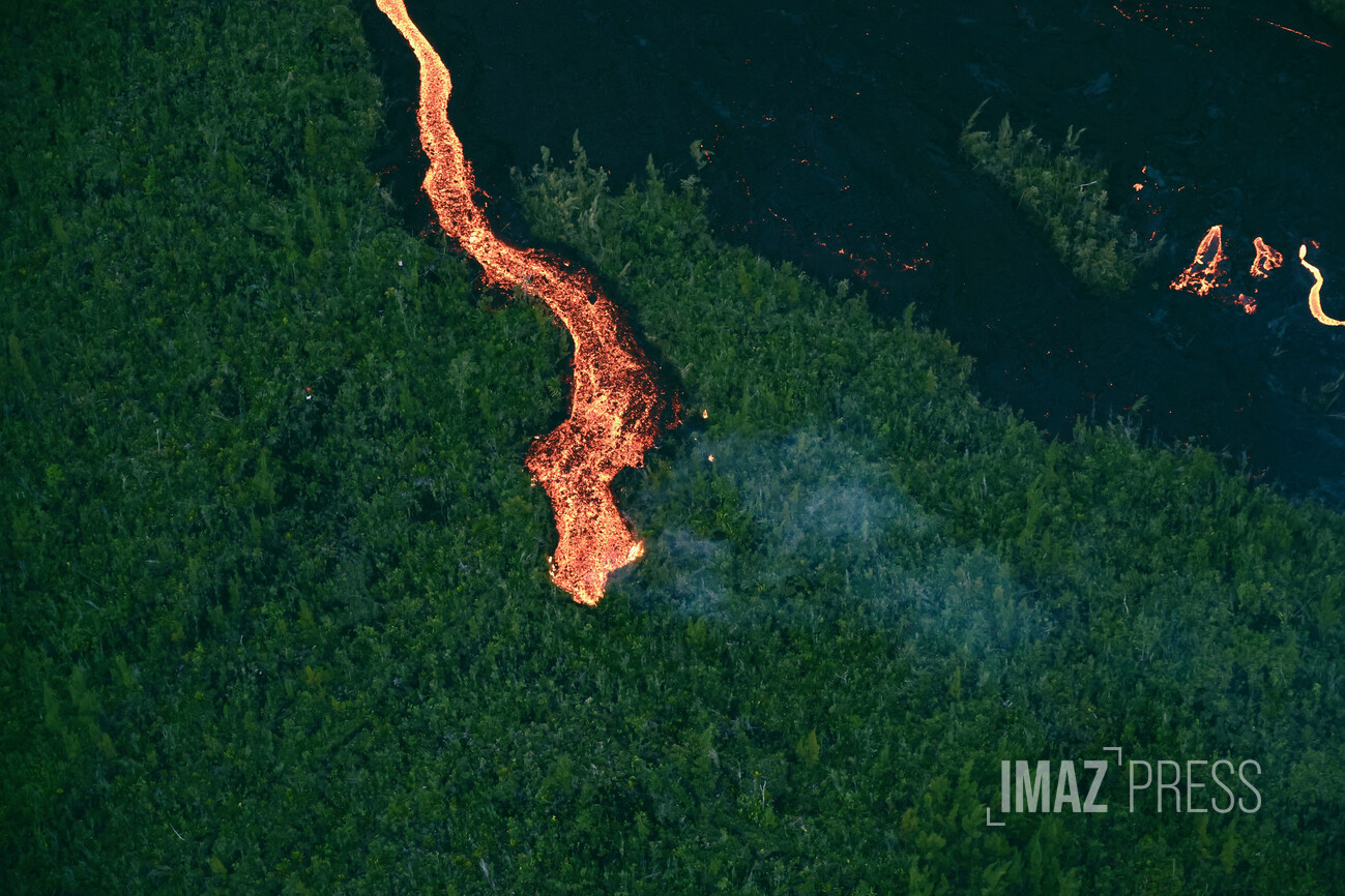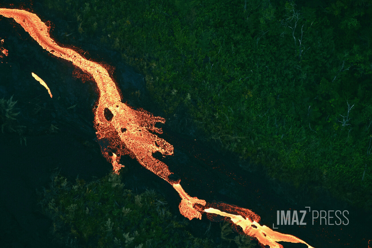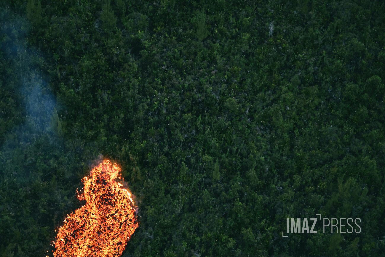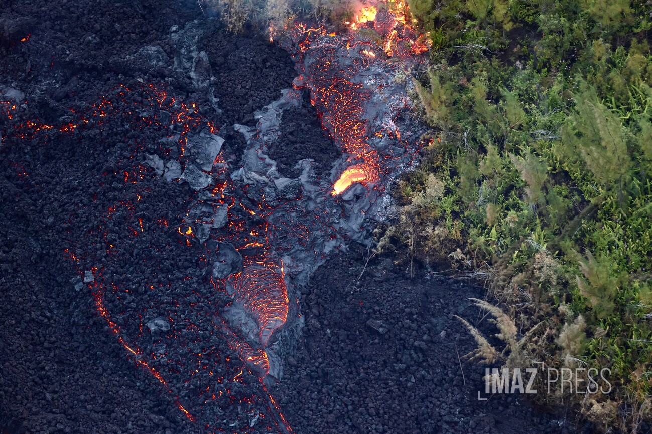 Notre photographe a pu survoler la coulée de lave, qui se rapproche doucement de la route. Regardez :