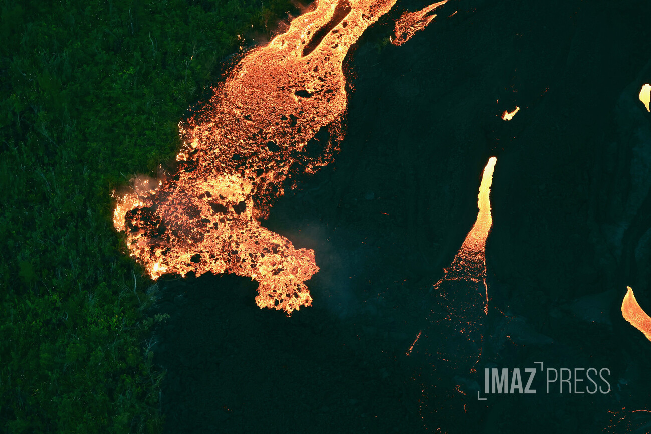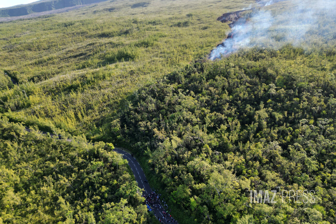 • Alors que les curieux continuent à affluer dans le secteur, la lave se rapproche de la RN2 désormais fermée à la circulation