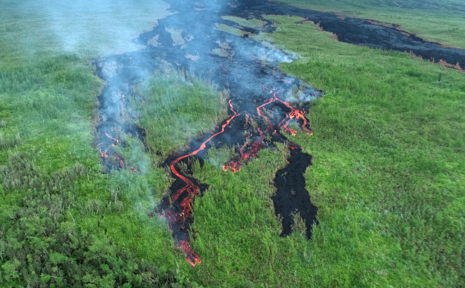Malgré la faible alimentation de la plateforme, depuis la reprise de l'éruption, un faible panache de gaz est toujours présent au niveau de l’entrée de la lave à l’océan et son intensité dépend de la quantité de lave arrivant à l’océan.