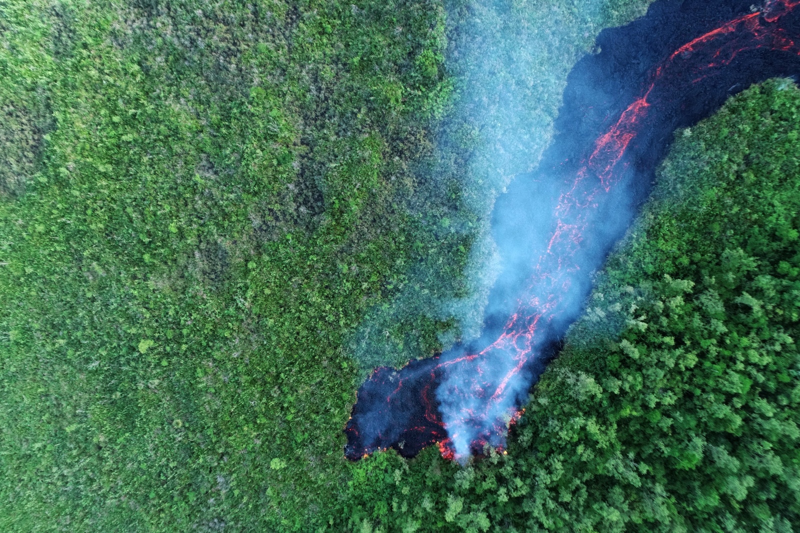 L'éruption au Piton de la Fournaise se poursuit ce mardi 10 mars 2026. Le front de coulée actif était situé hier - lundi - à 481 m d'altitude et à environ 1,9 km de la route nationale. Un seul site éruptif reste actuellement actif sur le flanc sud-sud-est du volcan, visible depuis le Piton de Bert (Photos : Mon Ami)
