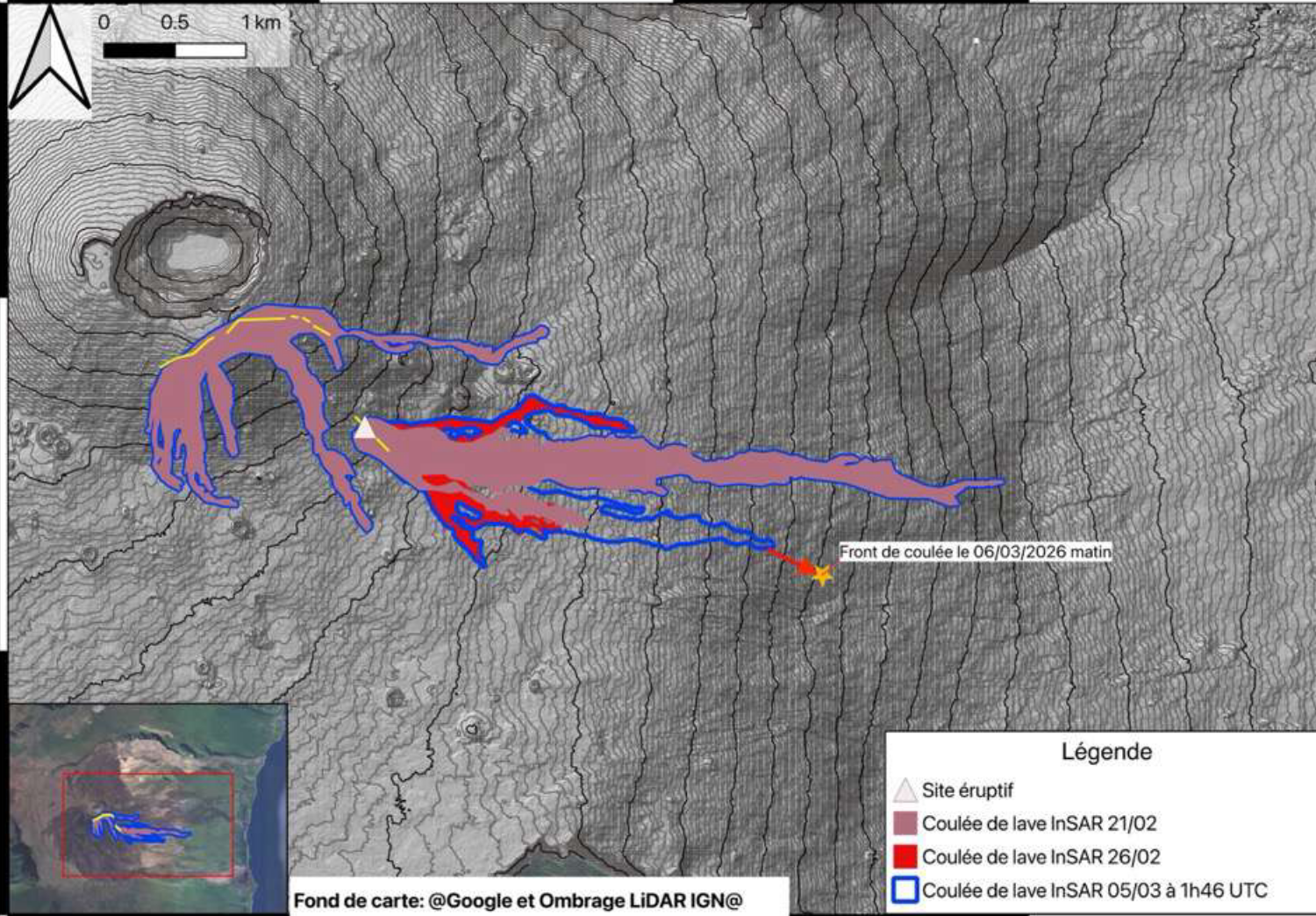Entre le 13 et le 6 mars 2026, environ 12 millions de m3 de lave ont été émis en surface.