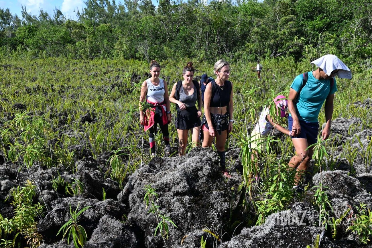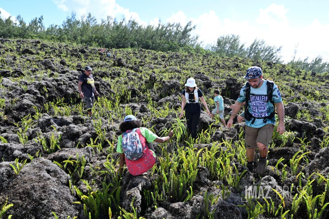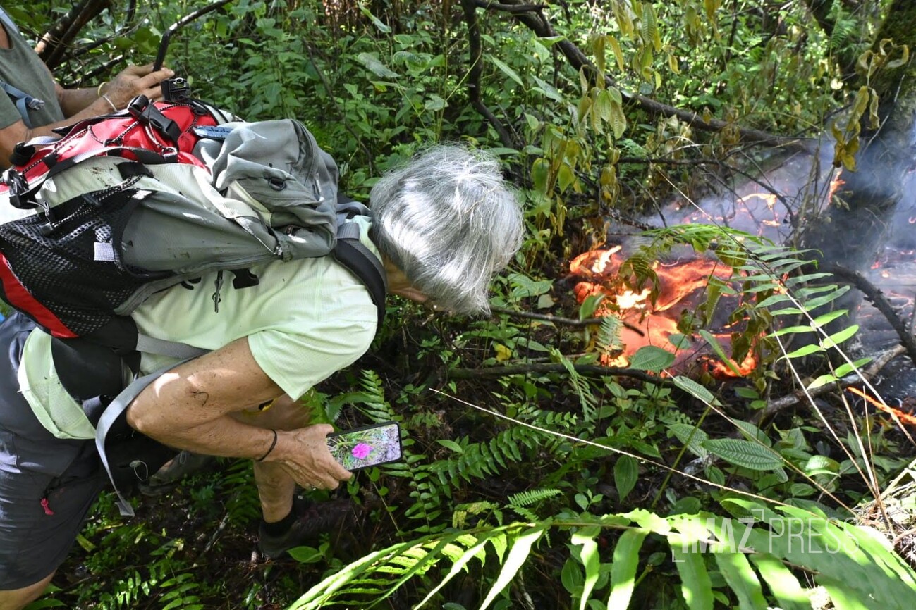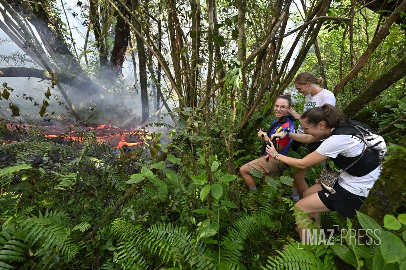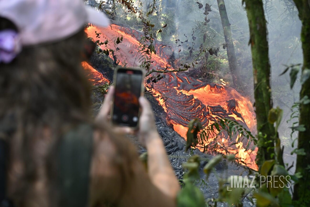 "Entre 13 et 15 millions de m3 de lave ont été émis par le Piton de la Fournaise depuis le début de l'éruption" informe l'OVPF. La coulée se dirige vers l'océan, les personnes de passage sur le site profitent d’une ballade proche de la lave.