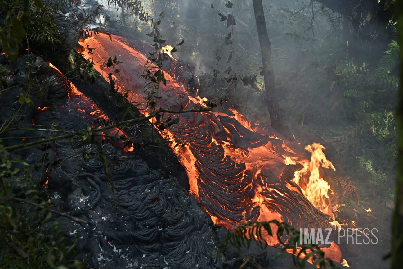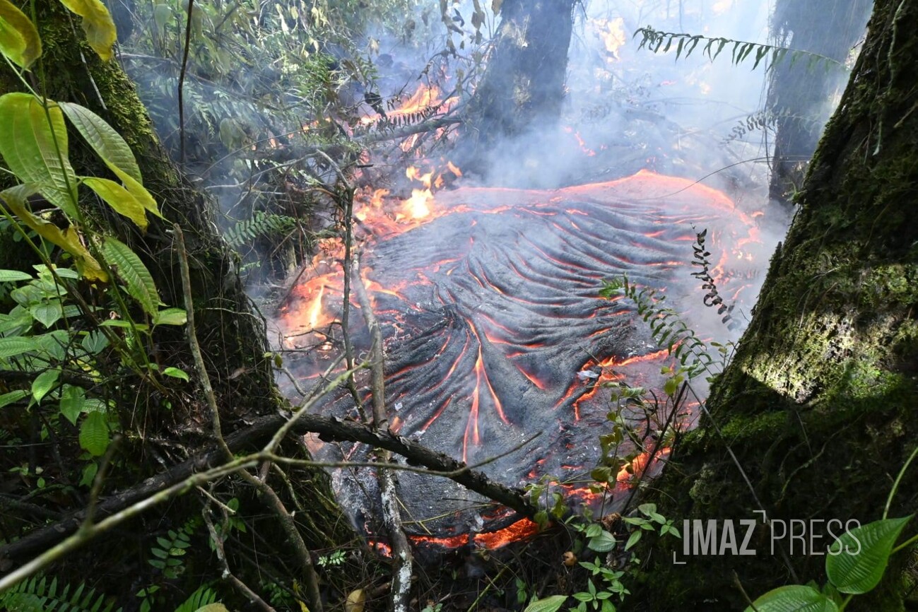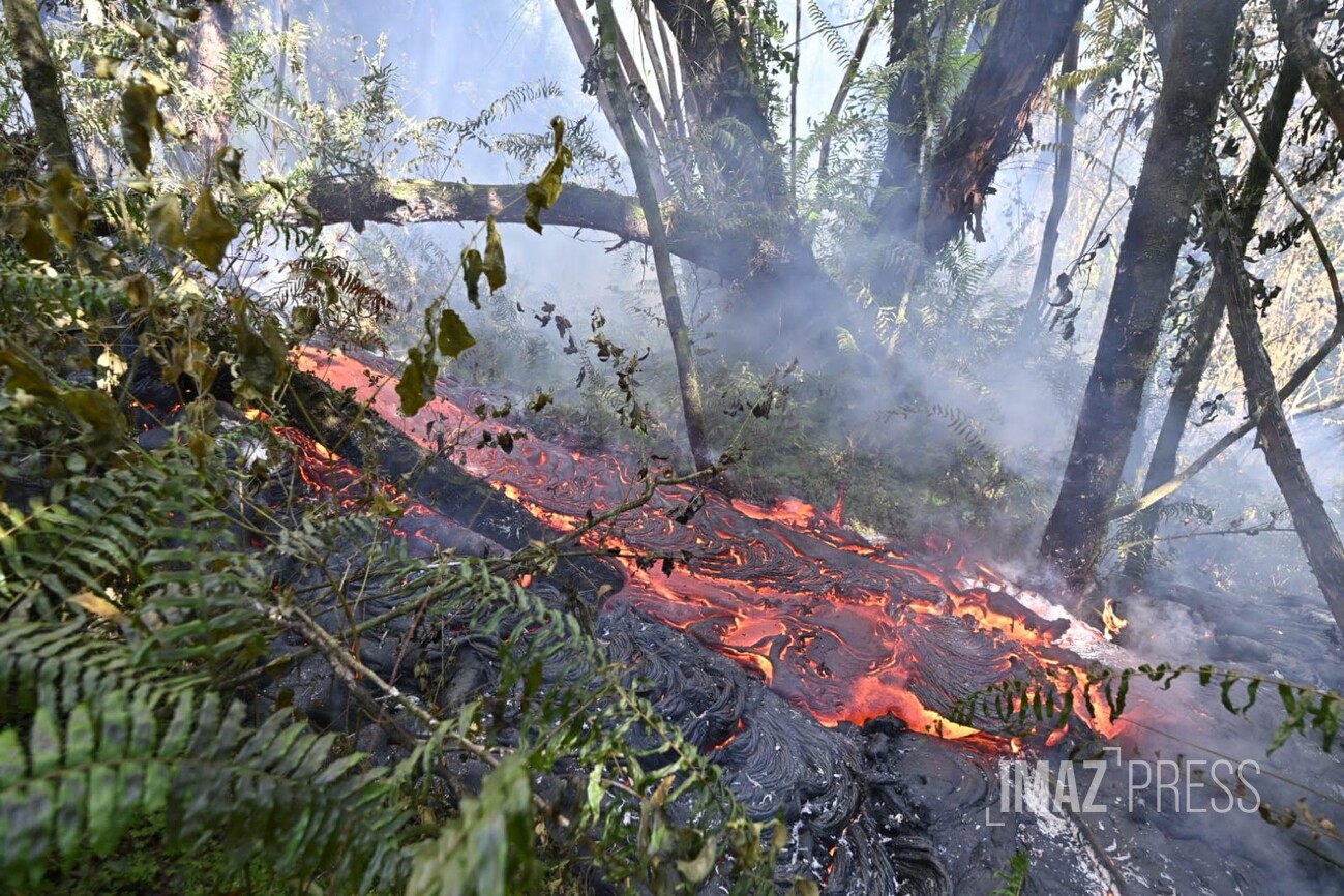 Les volcanologues indiquent que : "Le champ de lave émis depuis le site éruptif dessine toujours deux bras principaux. Le front du bras nord reste figé à environs 2,6 km de la route nationale 2 (RN2), à une altitude d’environ 660 m."