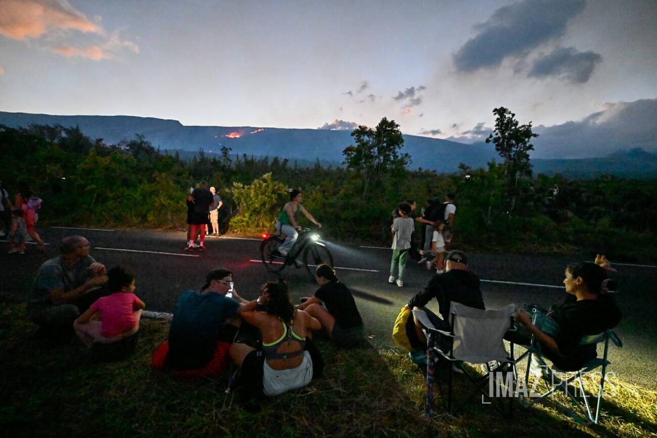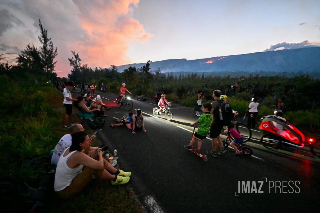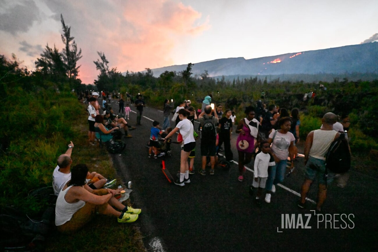 Dès l'annonce d'une possible traversée de la route par la lave, de nombreuses personnes, ont commencé à se rendre à proximité du site de la coulée. Regardez.