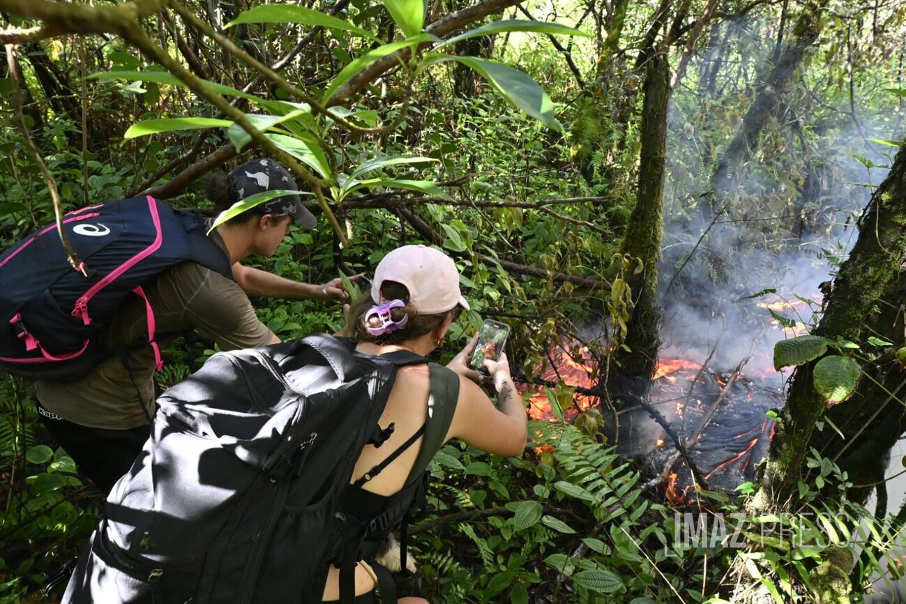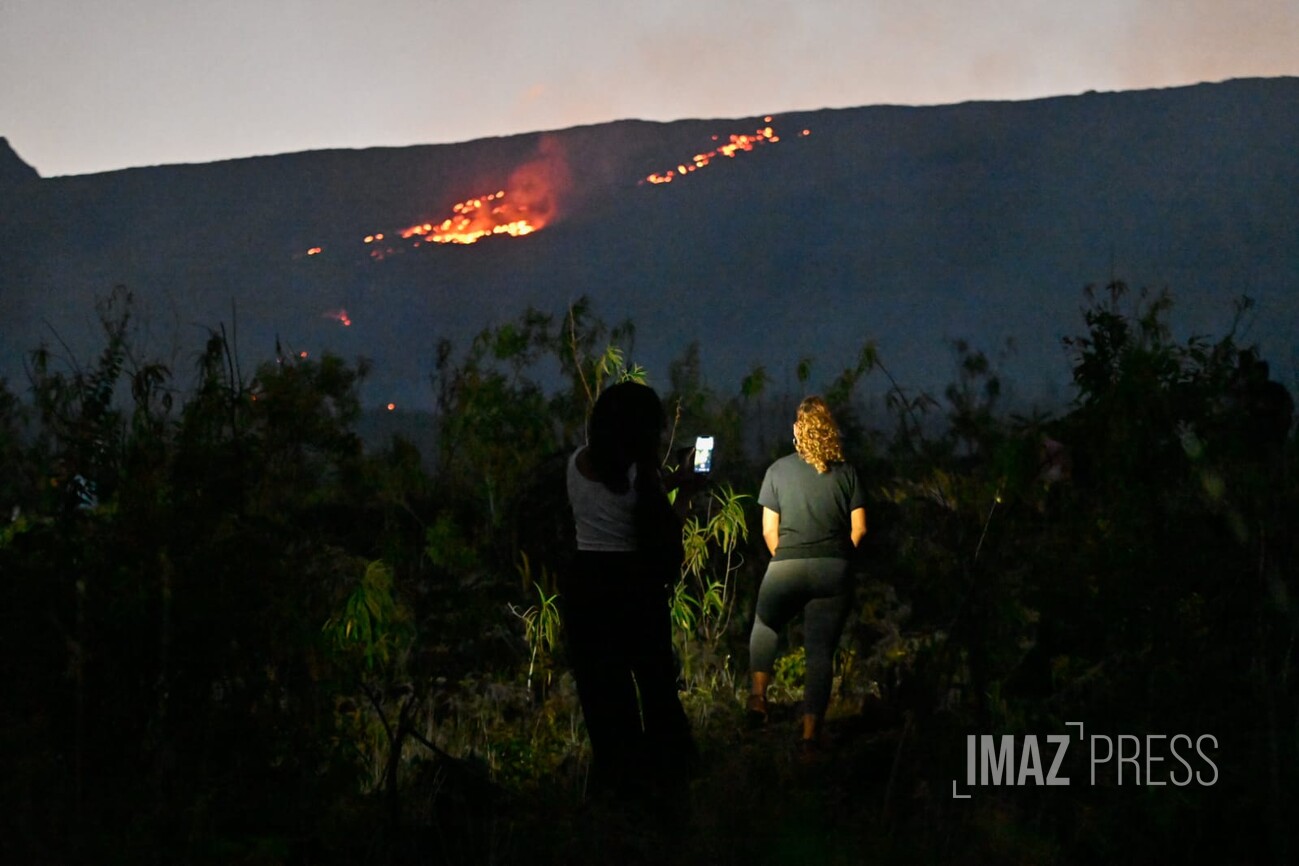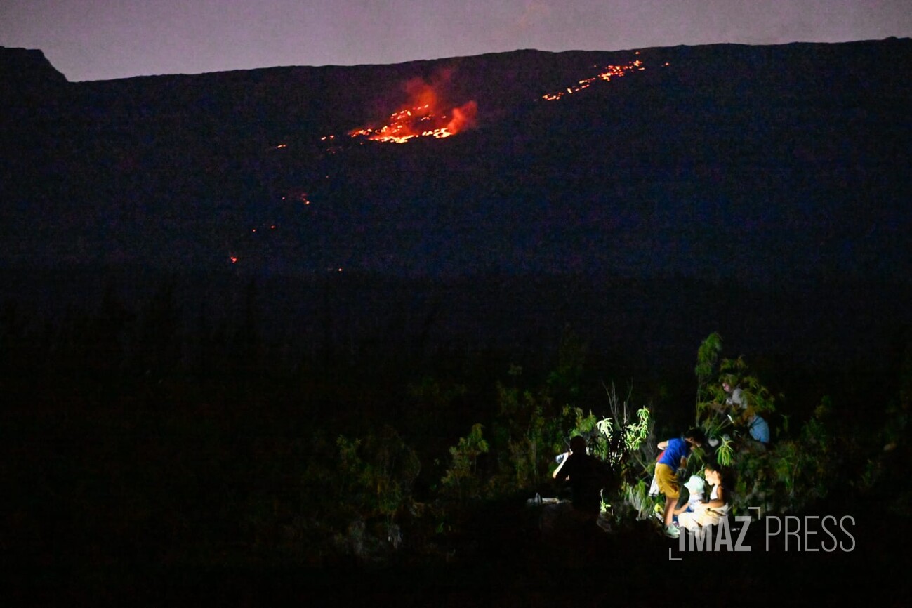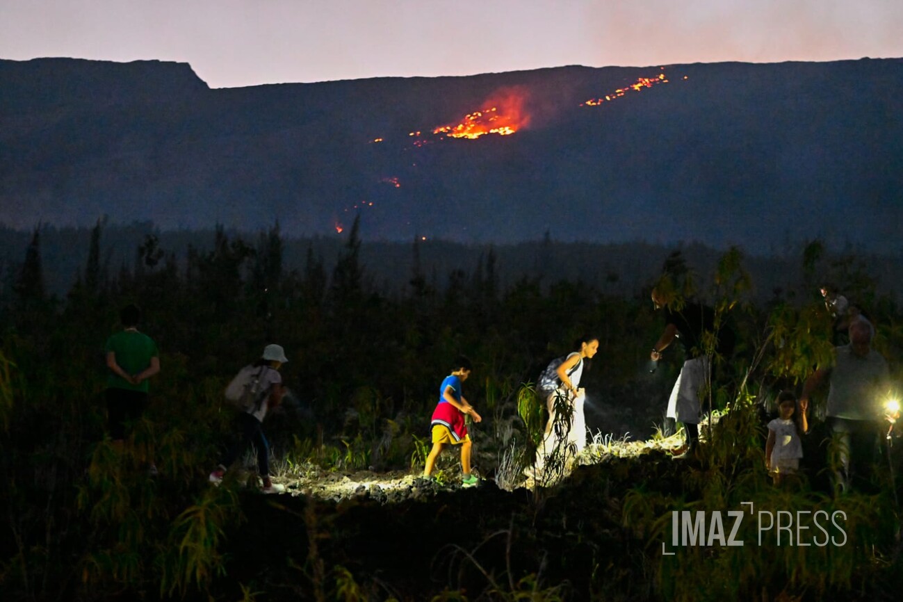Pluie, nuit ou chaleur près de la lave, rien n’arrête les touristes et les Réunionnais captivés par ce moment. Regardez.