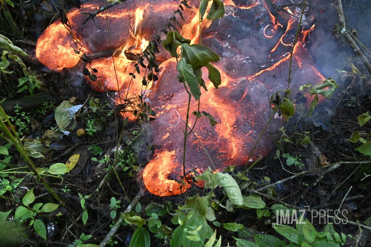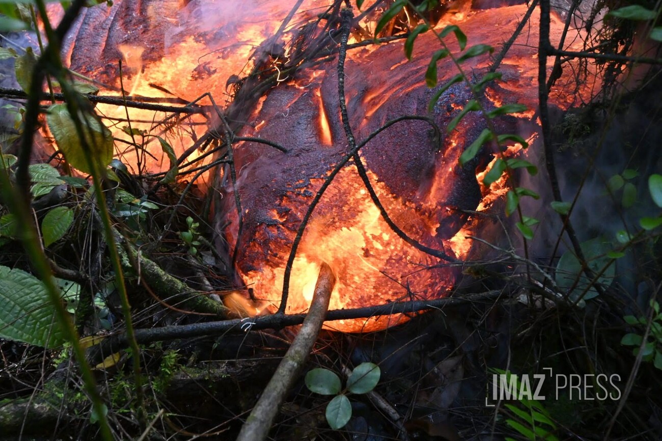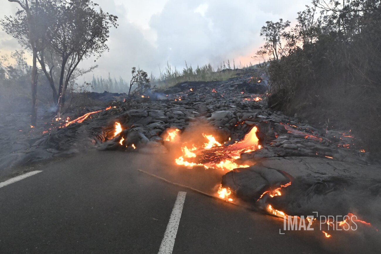 Des flammes, de la fumée... avec des températures affolants les compteurs, la lave en fusion brûle la route nationale 2. Regardez.