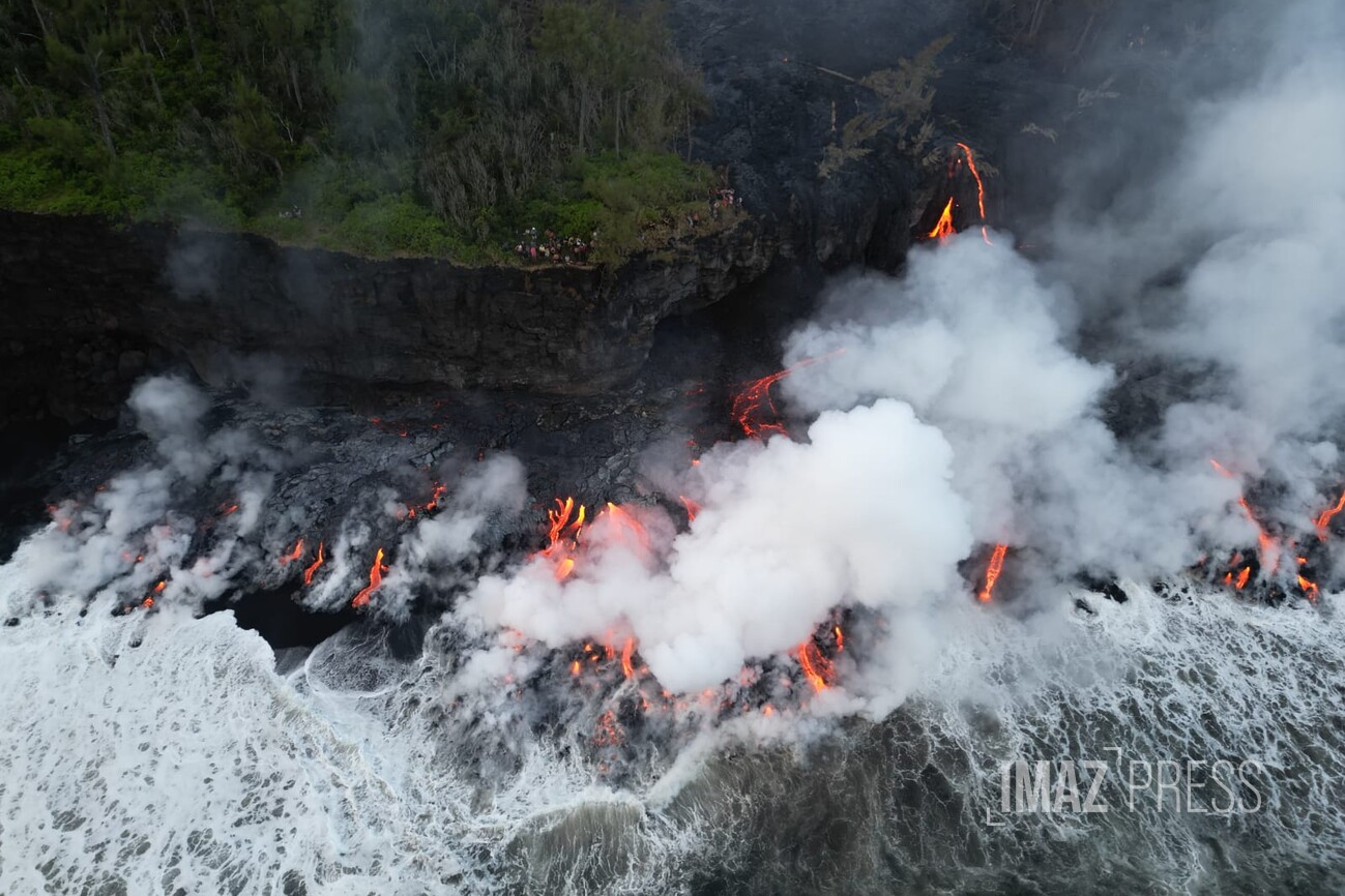 Au point de contact entre la lave et l’océan, une plateforme s’est formée résultant de l’accumulation de coulées de lave et de particules fines issues de la fragmentation de la lave. 8,5 hectares ont été gagnés sur l'océan. Regardez.