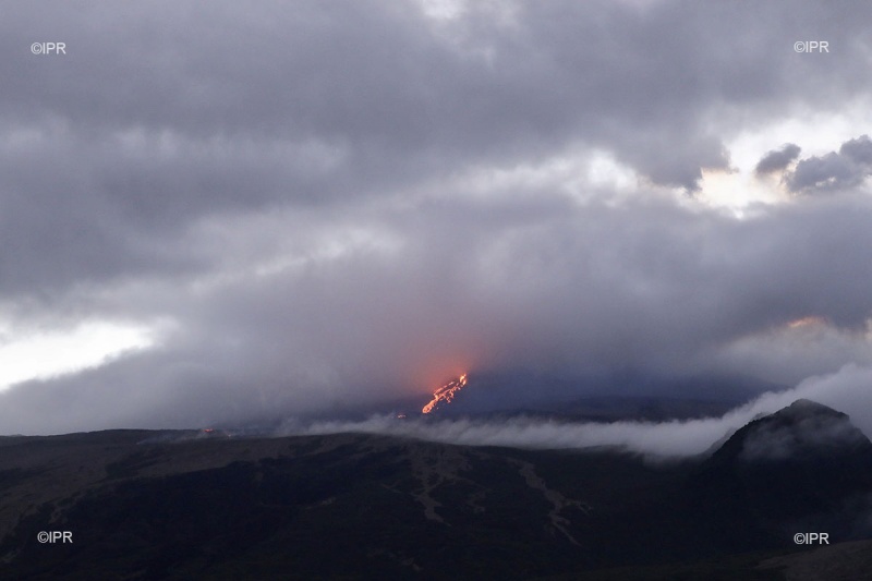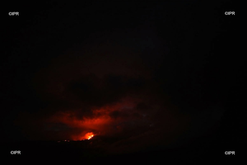 Le Piton de la Fournaise avait donné d'importants signes de réveil dans la matinée, avec le début d'une forte crise sismique. Avant que le temps se couvre, l'éruption était visible le soir même de la Route nationale 2 au niveau du Grand brûlé.