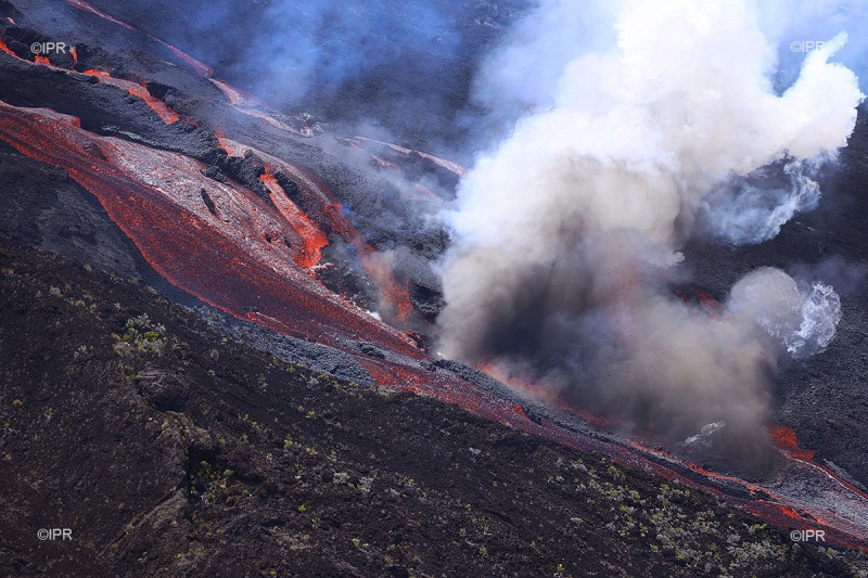 A Imaz Press Réunion nous avions survolé le volcan pour faire vivre, pour la toute première fois, l'éruption en direct sur Facebook :