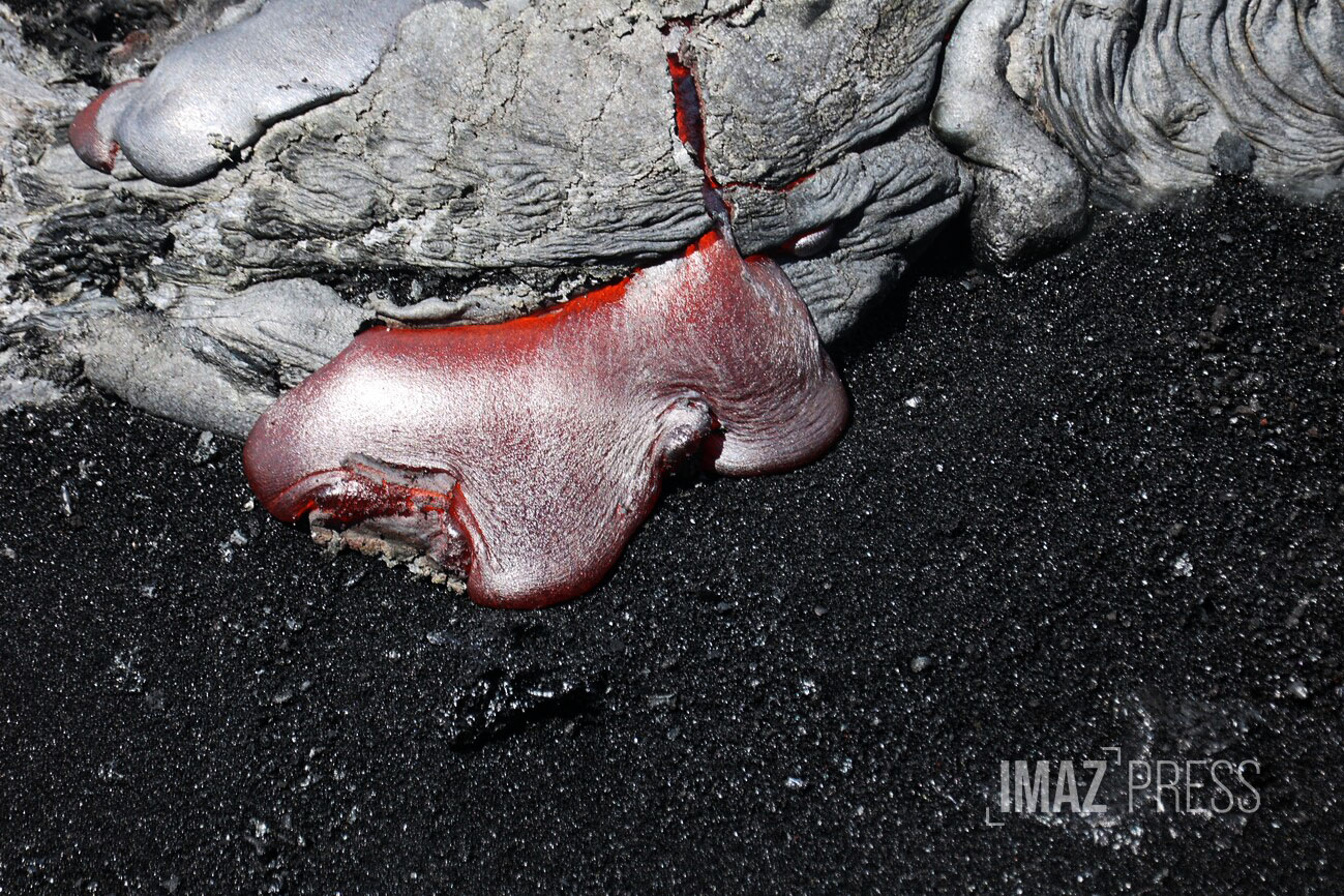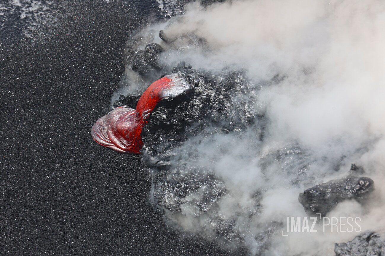 Au point de contact entre la lave et l’océan, une plateforme continue de se constituer et de s’élargir, résultant de l’accumulation de coulée de lave et de particules fines issues de la fragmentation de la lave.