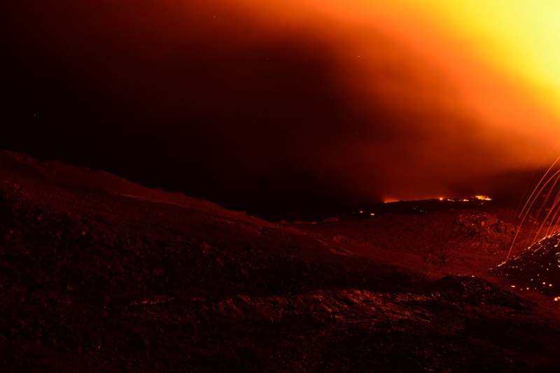 Les accompagnateurs "tunnels" disaient que les tunnels n'etaient pas pratiqués pendant les éruptions a cause du trémor: une vibration sismique continue causée par la passage de la Lave. Cette précaution est compréhensible. Ils ne sont pas au chomage pour autant puisque la nuit certains amènent légalement leurs groupes au pied de l'eruption. Il reste à savoir pour combien et les autres vont à mafate selon le meme reportage.