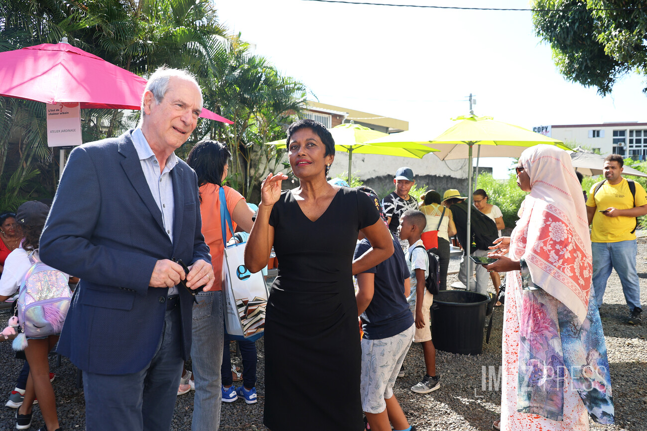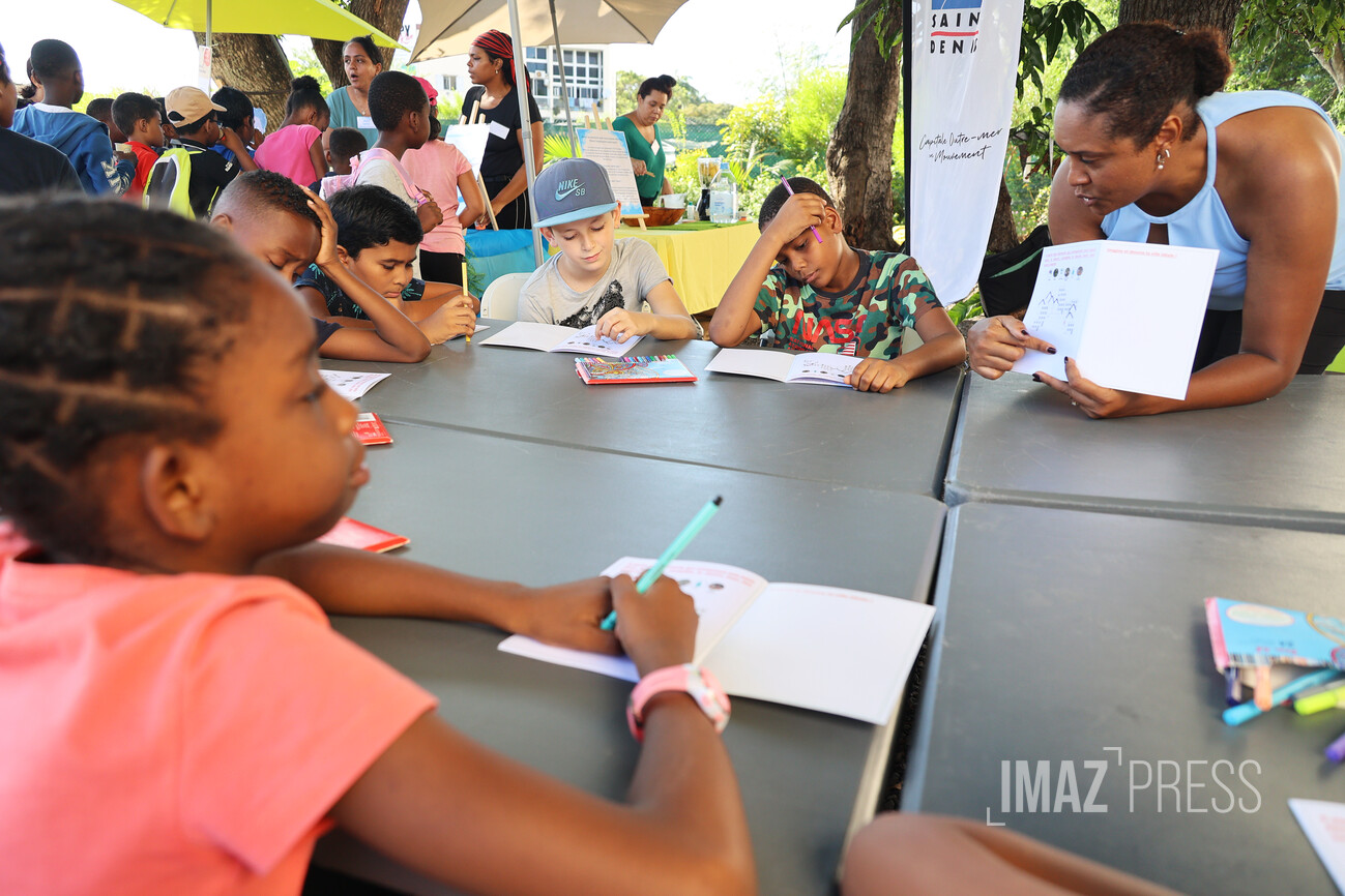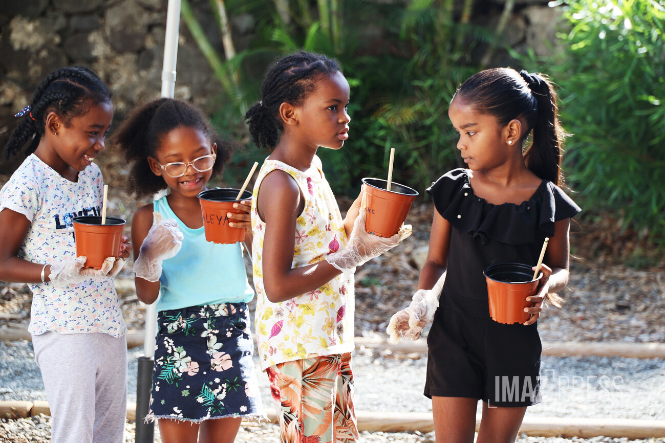 Dans le cadre du Projet de Renouvellement Urbain Nord Est Littoral (PRUNEL), Saint-Denis Ville Écologique, veut sensibiliser sa population à réduire les températures sur ses lieux de vie. C'est pourquoi, ce jeudi 27 avril 2023, dès 9h, plus de 170 marmailles des écoles dionysiennes ont participé à divers ateliers de sensibilisation au rucher PRUNEL du Butor. Dans la matinée, Guy Geoffroy, Président des Eco Maires sera présent pour décerner un prix à la Ville de Saint-Denis pour son travail en la matière. (Photo : sly/www.imazpress.com)