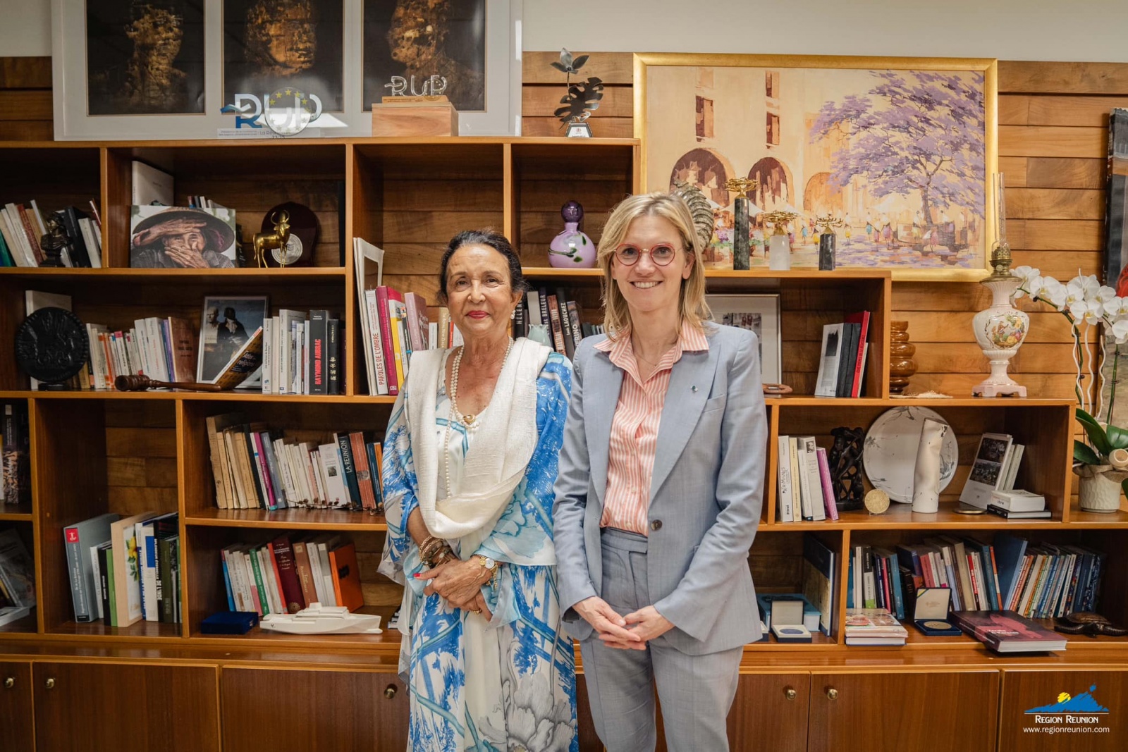 Le 12 avril 2025, à l'Hôtel de Région, Huguette Bello, présidente de Région, a accueilli Agnès Pannier-Runacher, ministre de la transition écologique, pour une rencontre axée sur les enjeux maritimes et environnementaux du territoire. Accompagnée de ses conseillers régionaux, Maya Césari, déléguée à l’économie bleue et Jean-Pierre Chabriat, délégué à la transition énergétique, la discussion a mis en lumière la position stratégique de La Réunion dans l’océan Indien. Nous publions le post ci-dessous. (Photo : Région Réunion)