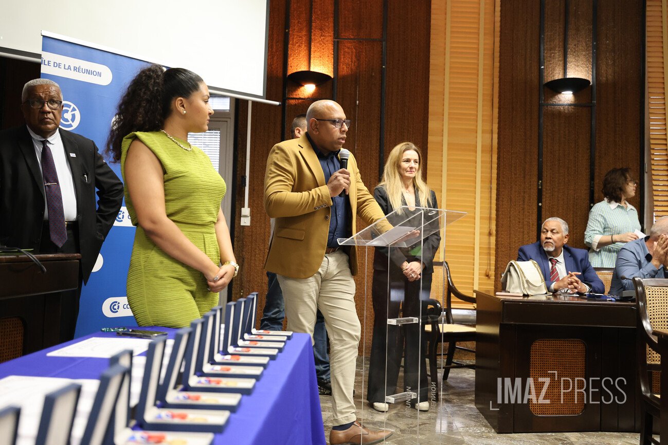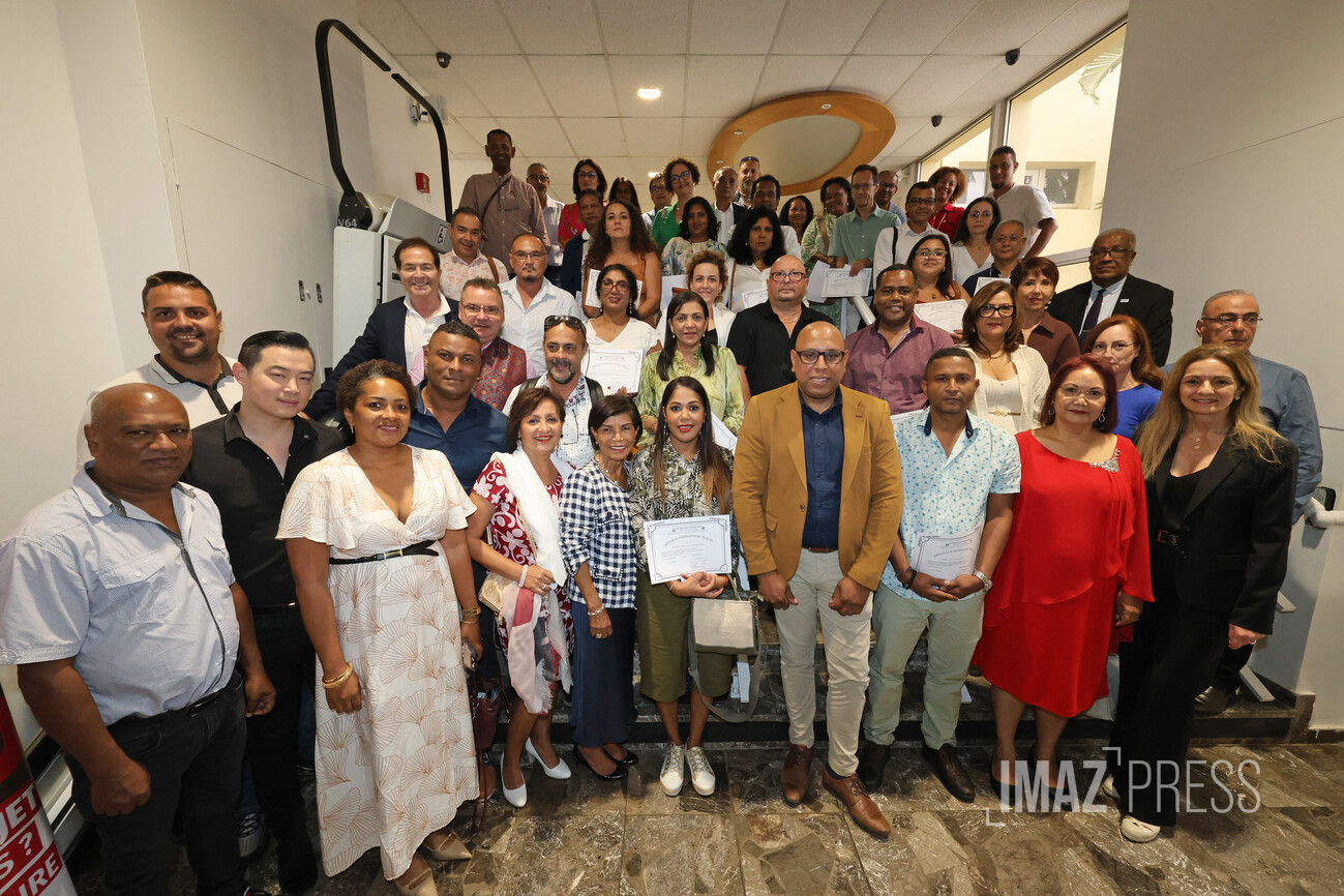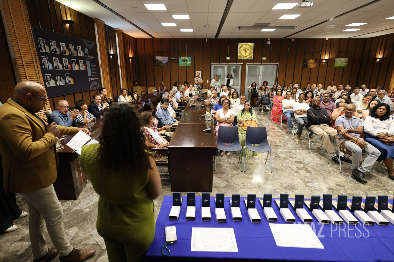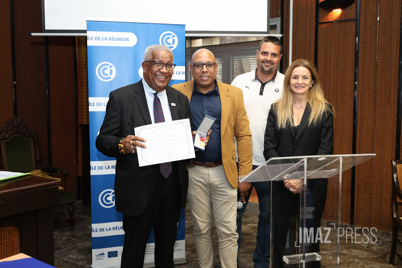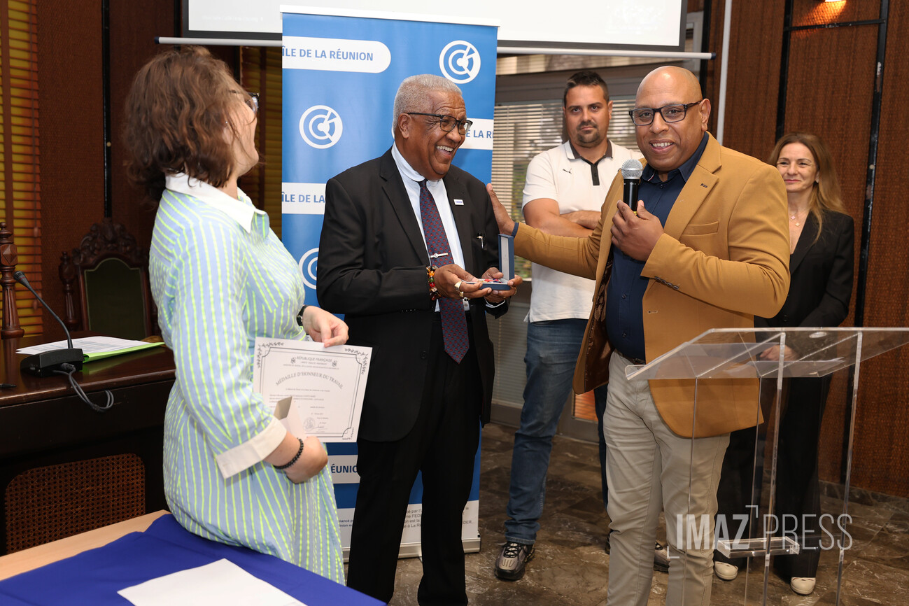 Ce vendredi 19 septembre 2025, le président de la Chambre de commerce et d'industrie de La Réunion (CCIR) a remis la médaille d'honneur du travail à 56 de ses collaborateurs. Ont été remises, 7 médailles d'argent "20 ans", 13 médailles de vermeil "30 ans", 19 médailles d'Or "35 ans" et 17 médailles Grand Or "40 ans" au service de la CCI (Photos : sly/www.imazpress.com)
