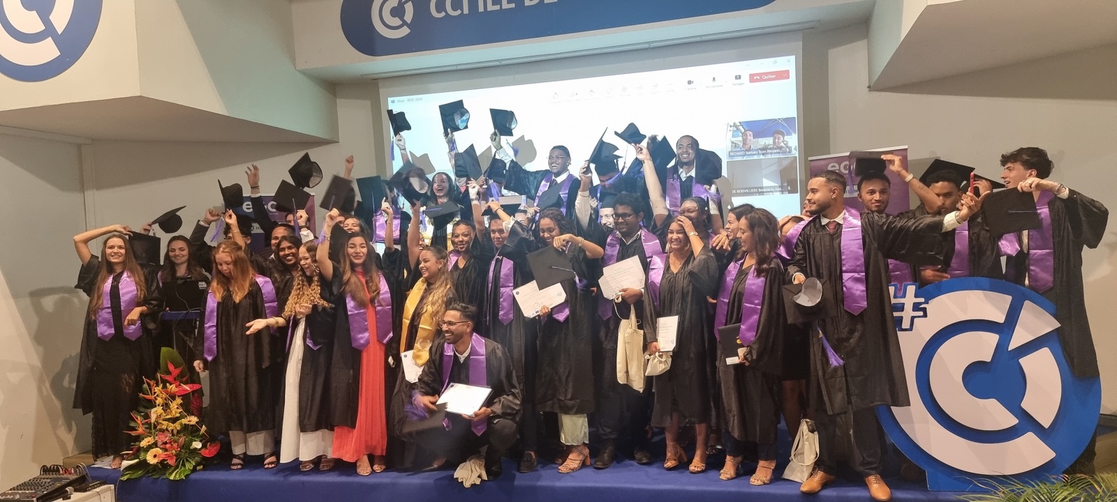 Ce jeudi 19 septembre 2024, la CCI Réunion a organisé la cérémonie de la remise des diplômes de la 32ème promotion de l'EGC (École de commerce de La Réunion). Ce moment a marqué la concrétisation de trois années riches en apprentissages avec 91% de réussites pour les étudiants qui décrochent leurs Bachelors EGC (Bac+3). Familles, amis et partenaires ont pu célébrer cette étape ensemble. Nous publions le post ci-dessous. (Photo: CCIR)