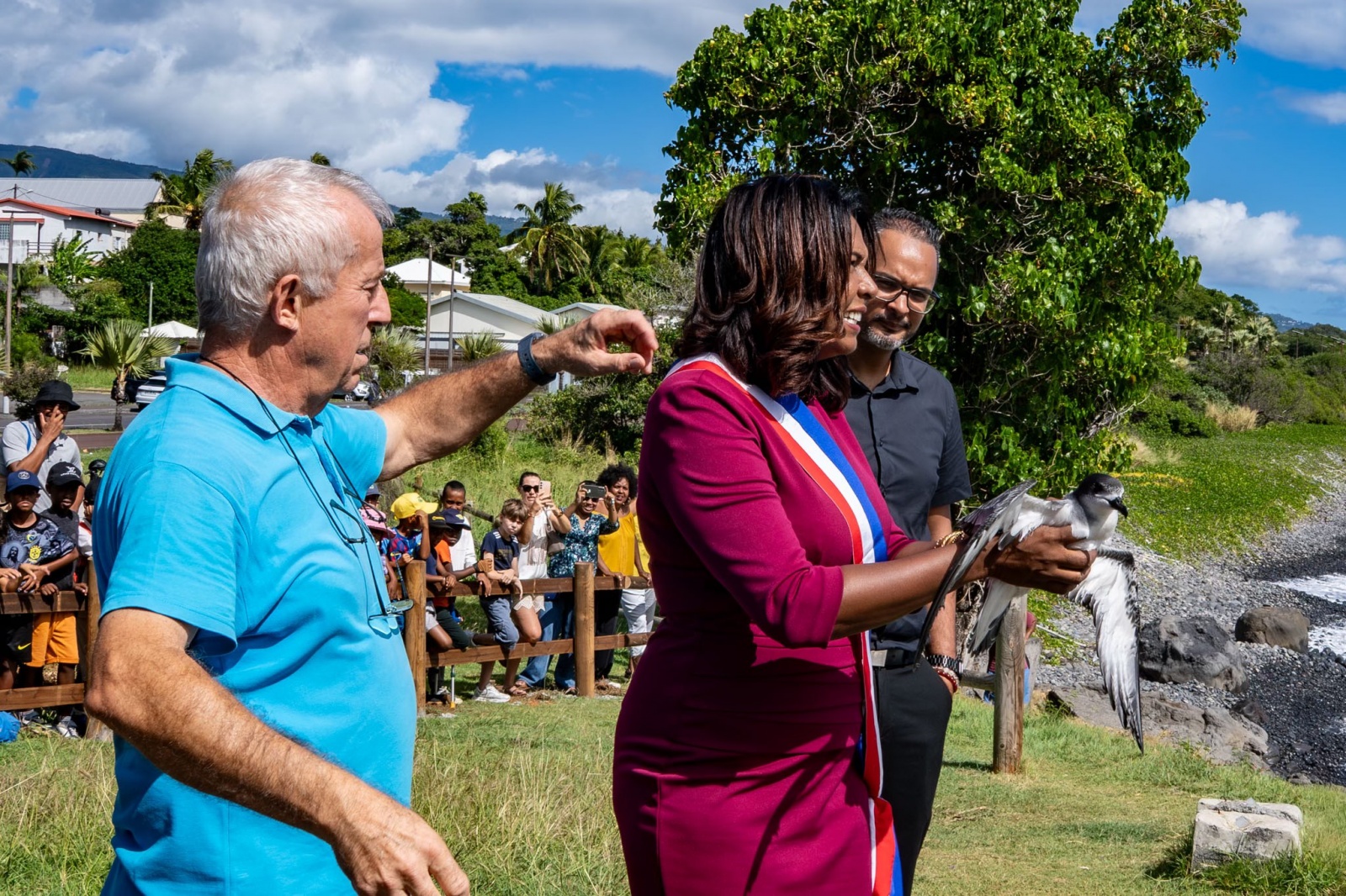 Ce mardi 21 avril 2026, sur le littoral de Sainte-Marie, dans le cadre de l’événement Nuits sans Lumières 2026, la maire Céline Sitouze et les enfants de l'école élémentaire de Terrain Élisa et Louis Lagourges, ont participé à l'envol d'un jeune pétrel de barau. C'est la maire qui lui a redonné sa liberté : "J’avais cet oiseau entre les mains, j’étais responsable de sa vie... j’ai eu peur qu'il ne réussisse pas son envol et qu'il tombe sur les rochers", confie t-elle. (Photos : la Cinor )
