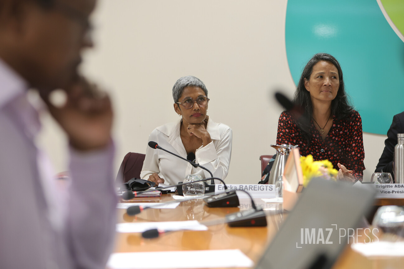 La séance du Conseil communautaire de la Cinor s'est tenue ce jeudi 26 juin 2025. À l'ordre du jour : 55 rapports, parmi lesquels le vote des comptes administratifs 2024. À cette occasion, Ericka Bareigts, a présenté, en ouverture de séance, une motion sur la gestion des ravines. Cette motion a été votée, à l'unanimité par les élus de la Cinor. (Photo sly/www.imazpress.com)