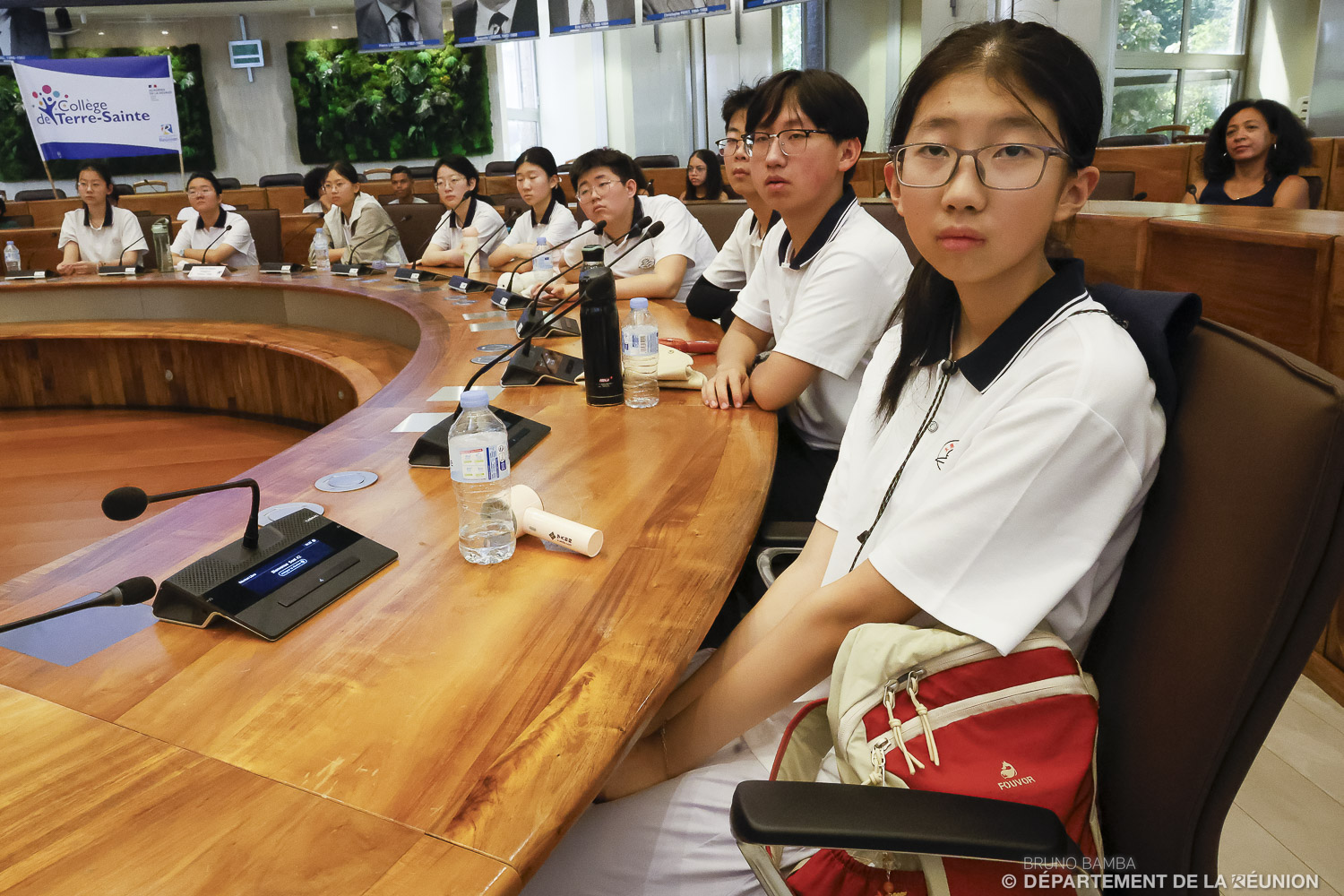 La rencontre était notamment ponctuée par le visionnage du séjour en mai 2025 en Chine, de 25 jeunes de Terre Sainte, tous présents dans l’hémicycle pour accueillir leurs camarades chinois, venus à leur tour découvrir l’île intense. Le Consul général de Chine Xiaolei Chen s’est adressé aux jeunes dans sa langue maternelle avant de traduire : "En tant qu’élèves de l’école de langues étrangères, vous êtes ici pour apprendre le français. Mais profitez aussi de l’occasion pour apprendre le créole. Ne soyez pas timides. Profitez de votre séjour et de la chance que vous avez de passer sur cette île du vivre ensemble".