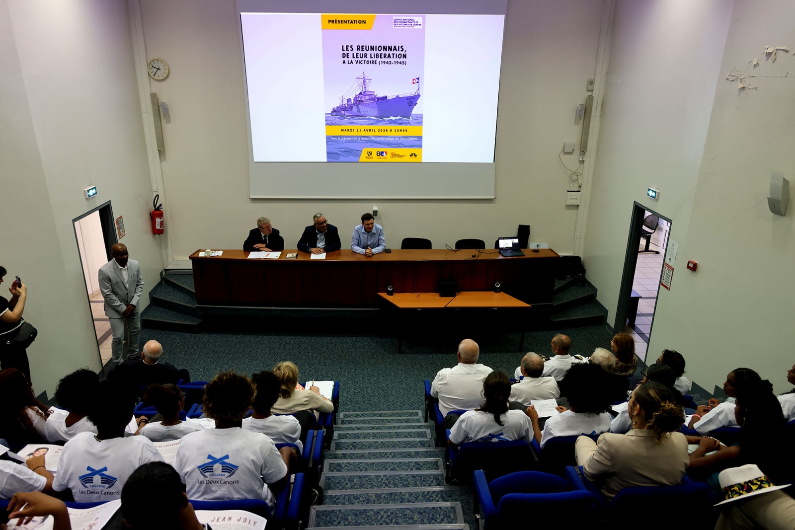 À l'occasion du quatre-vingtième anniversaire du Débarquement, les élèves de la classe de défense du collège des Deux-Canons, en partenariat avec l'Office national des combattants et des victimes de guerre (ONaCVG), ont présenté leur bande-dessiné "Les Réunionnais de leur Libération à la Victoire" aux archives départementales. "Ce livret retrace le destin de soldats célèbres, comme Léon de Lépervanche, ou restés anonymes, qui se sont battus pour nos valeurs. Un travail de recherche remarquable qui rappelle que plus de 350 des nôtres sont tombés au combat", écrit le Département. (Photos : Département de La Réunion)