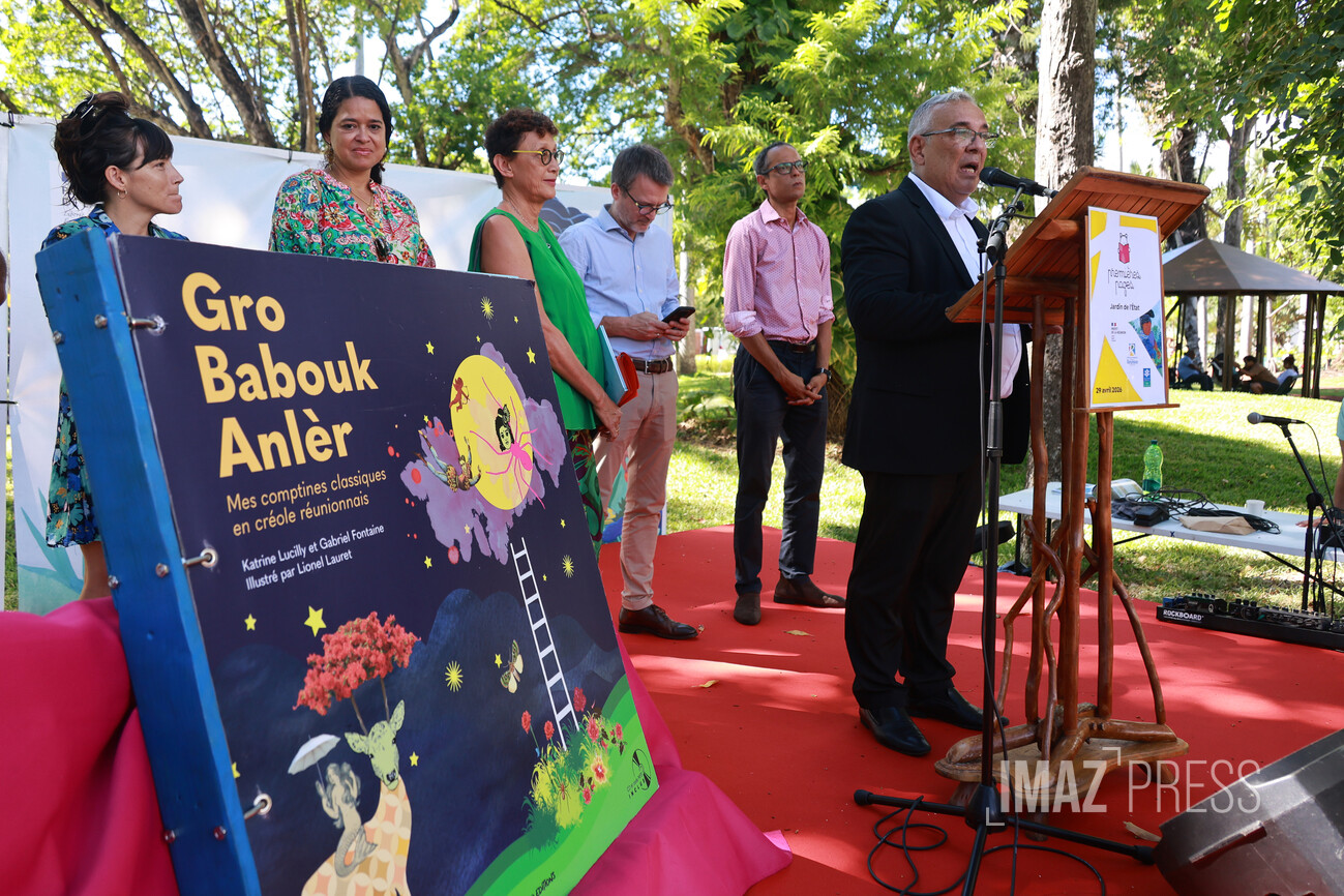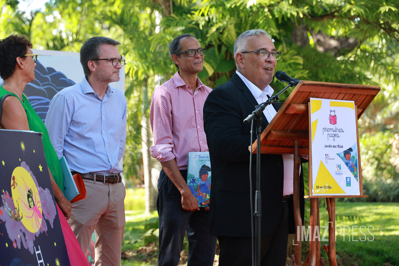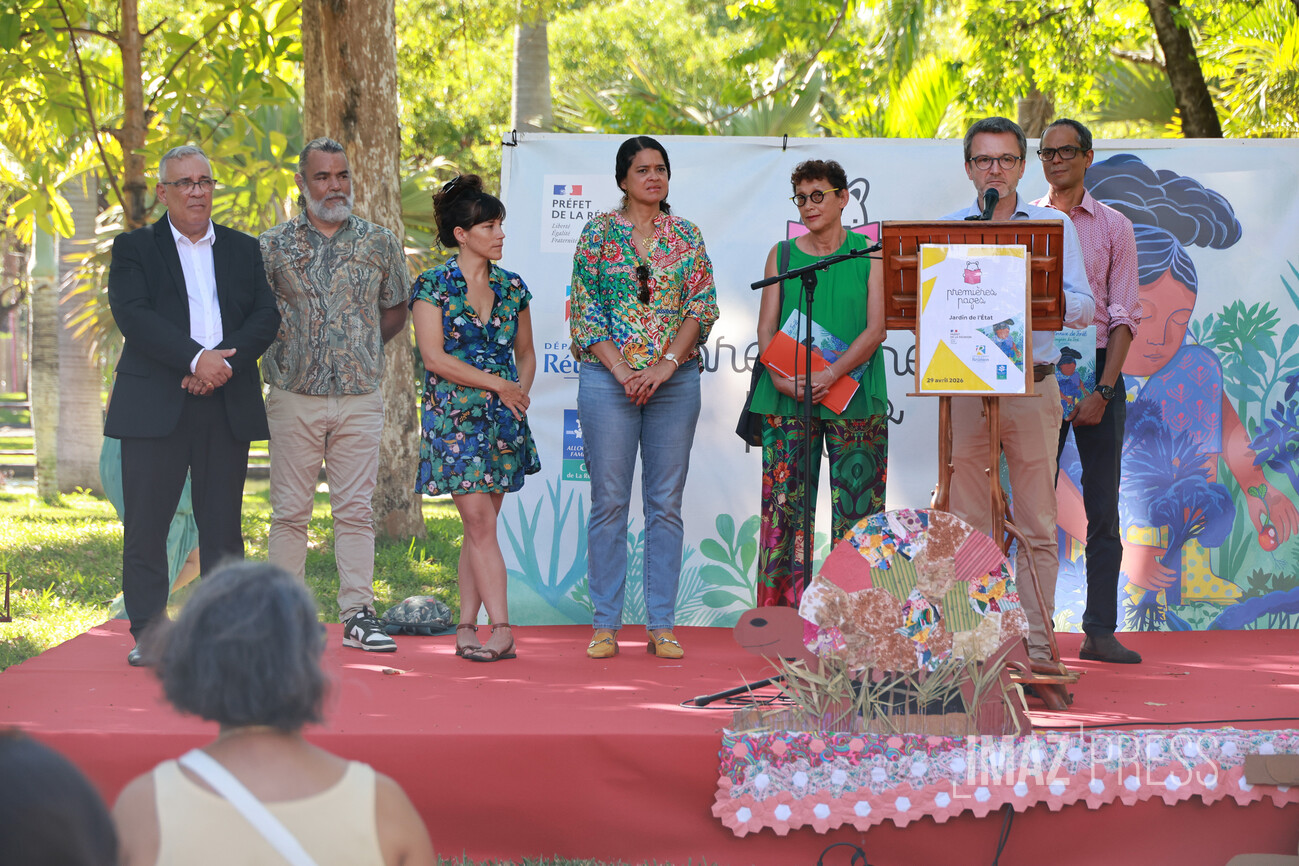 Le conseil départemental a lancé, ce mercredi 29 avril 2026, la 11 ème édition de l'opération "Premières Pages", au Jardin de l’État, à Saint-Denis. Cette année encore, des milliers de familles réunionnaises sont invitées à récupérer gratuitement un album destiné aux enfants nés en 2024 et 2025. (Photos Stephan Laï-Yu / www.imazpress.com)