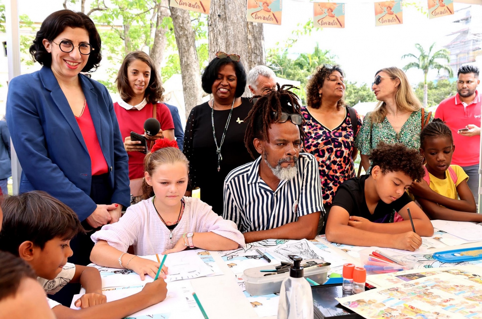 La Conseillère départementale Sabrina Tionohoué, représentant le Président Cyrille Melchior, a inauguré, jeudi 30 novembre dans la cour du site de la Victoire, à Saint-Denis, la 13e édition du festival Cyclone BD, en compagnie de la Ministre de la Culture Rima Abdul-Malak.