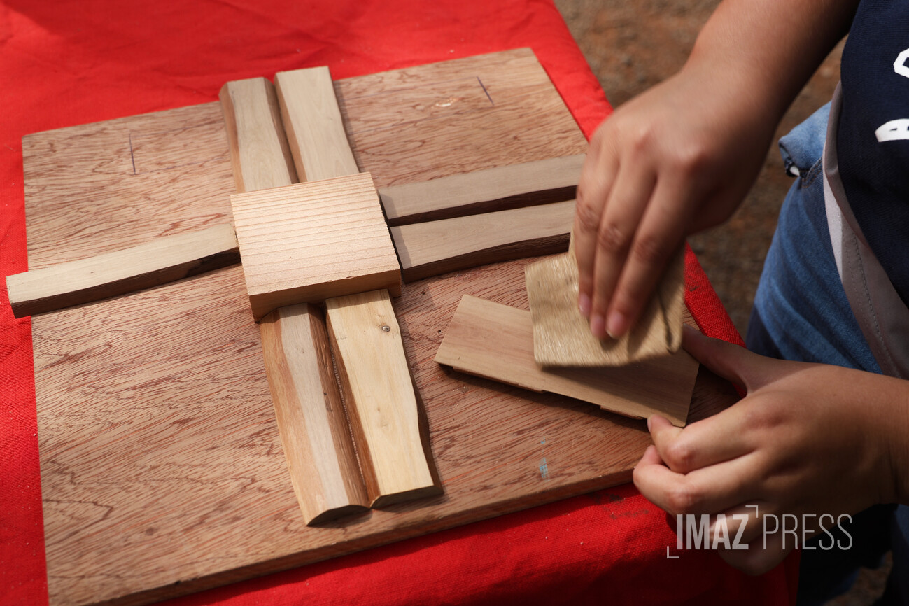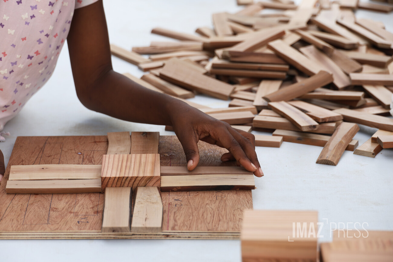 Autour de lui, plusieurs agents manipulent les morceaux de bois sous l’œil attentif de Rashad Zitoumbi, agent polyvalent. Ce dernier explique : "Ils font tout de A à Z sous nos regards. Nous sommes là pour leur expliquer et leur venir en aide si besoin, mais c’est eux qui mettent la main à la pâte."