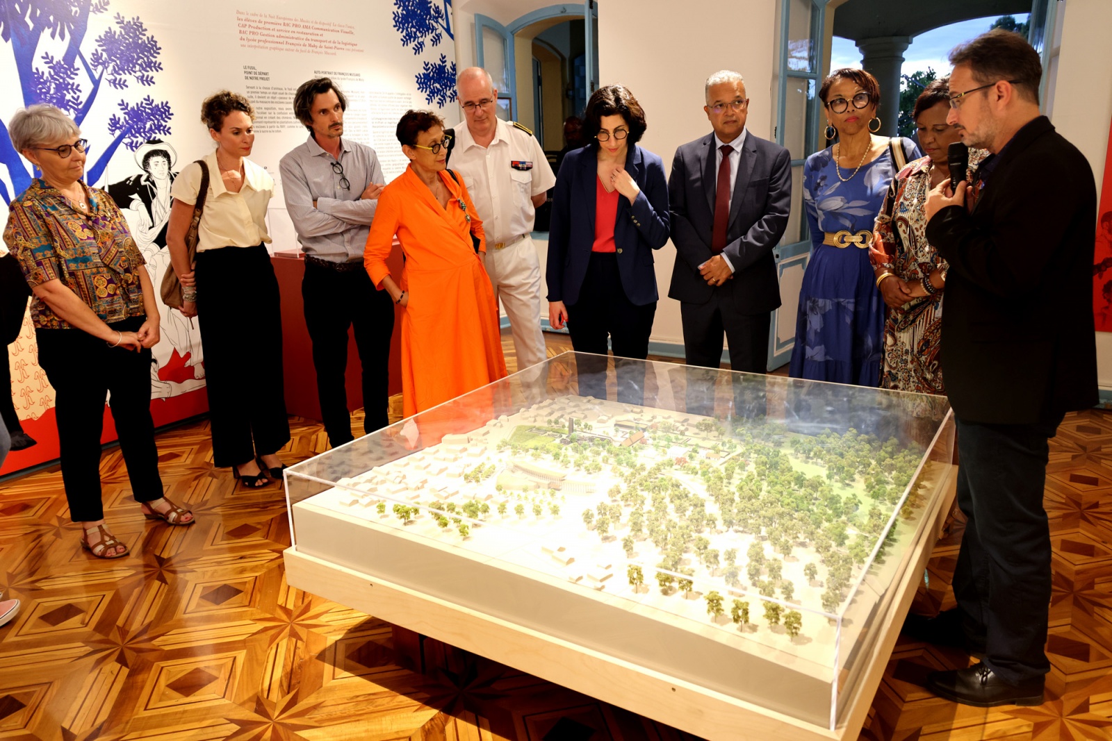 La Ministre de la Culture a ainsi pu découvrir les maquettes du futur musée et arpenter les fouilles archéologiques qui sont conduites à Villèle depuis octobre 2022.