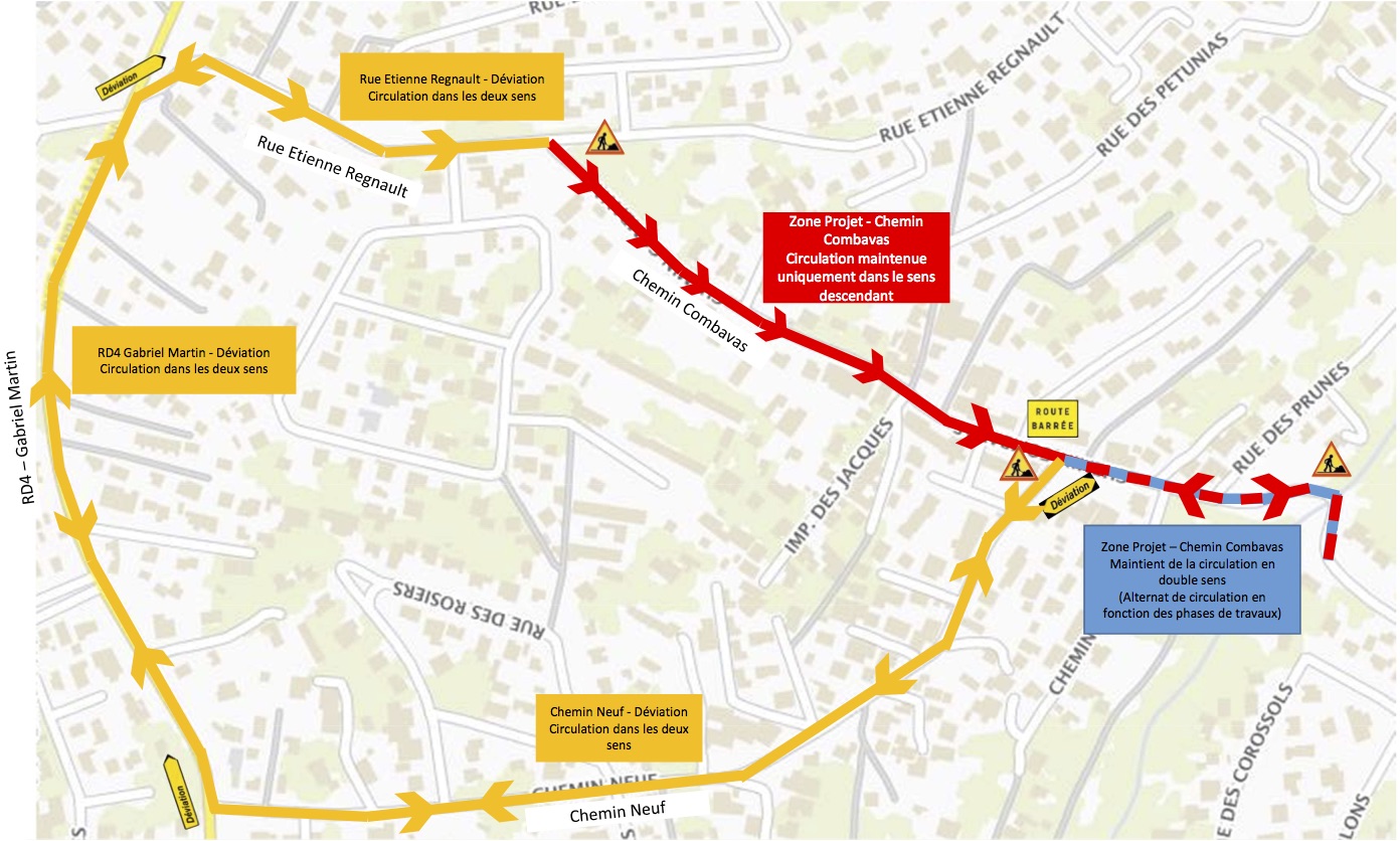 A partir du lundi 6 juillet 2020 les travaux d'aménagement du chemin Combavas (Plaine-Saint-Paul) vont débuter. Le chantier va durer 21 semaines et concernera la zone du "bassin de vie de La Plaine Saint-Paul allant de l'intersection de la rue Étienne-Regnault jusqu'à la ravine Lolotte " précise la commune de Saint-Paul
