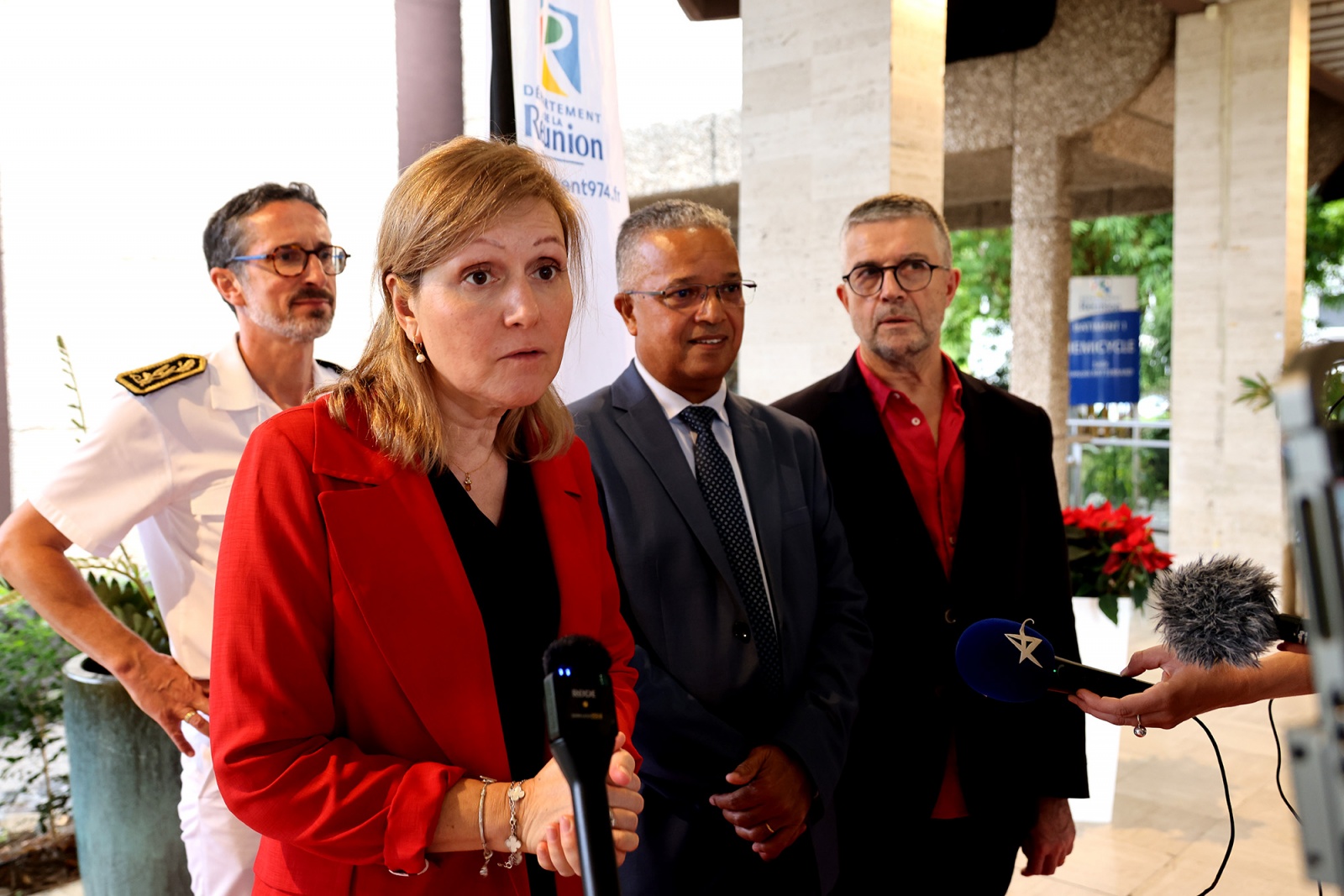 Dans le cadre de sa visite officielle, Yaël Braun-Pivet, Présidente de l’Assemblée nationale a été reçue par Cyrille Melchior, Président du Conseil Départemental au Palais de la Source ce Lundi 8 janvier 2024. Lors de cette rencontre, qui s’est déroulée en présence de Bertrand Pancher, président du groupe Libertés, Indépendants, Outre-mer et Territoires et du Préfet de La Réunion, Jérôme Filippini « les sujets qui touchent les Réunionnaises et des Réunionnais dans leur quotidien ont été abordés ».