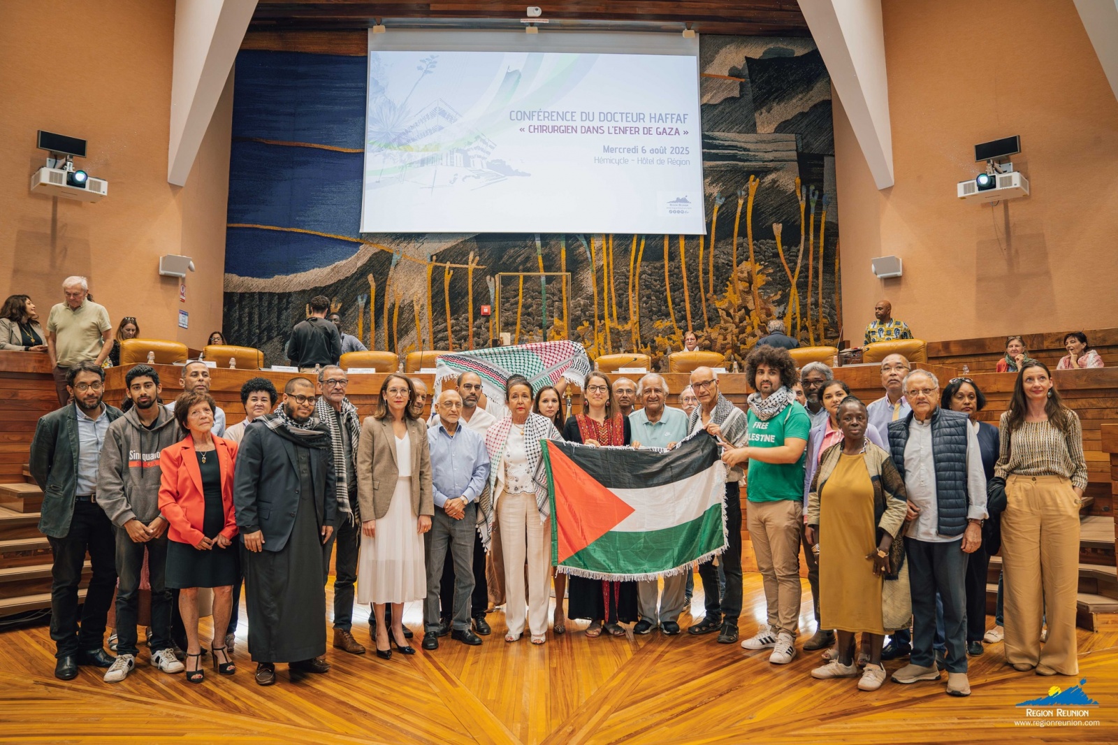 Ce mercredi 6 août, la présidente de Région Huguette Bello a ouvert la conférence du docteur Yacine Haffaf dans l’hémicycle de l’Hôtel de Région. Ancien chirurgien général au CHU Félix Guyon, il est intervenu aux côtés du Collectif Réunion Palestine pour témoigner de sa mission humanitaire à Gaza. Nous publions le post de la Région Réunion ci-dessous. (Photos : Région Réunion).