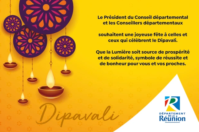 A partir de ce lundi 24 octobre 2022, la communauté Tamoule de La Réunion célèbre le Dipavali, aussi connu comme fête de la lumière. C'est l'une des célébrations les plus importantes pour les hindous de l'île célébrant Latchimi, déesse de la lumière et de la prospérité. Le Conseil départemental souhaite un bon Dipavali à la communauté tamoule. "Que la lumière soit source de prospérité et de solidarité, symbole de réussite et de bonheur pour vous et vos proches" écrit le Département.