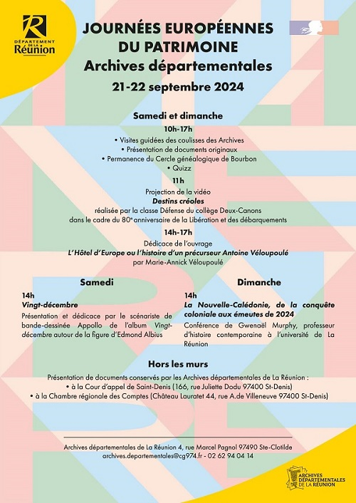 Comme chaque année, les Journées Européennes du Patrimoine (JEP) sont l'un des événements majeurs de la culture à l'échelle de l'Europe et donc l'occasion pour les réunionnais de visiter gratuitement des musées et autres établissements à vocation culturelle.