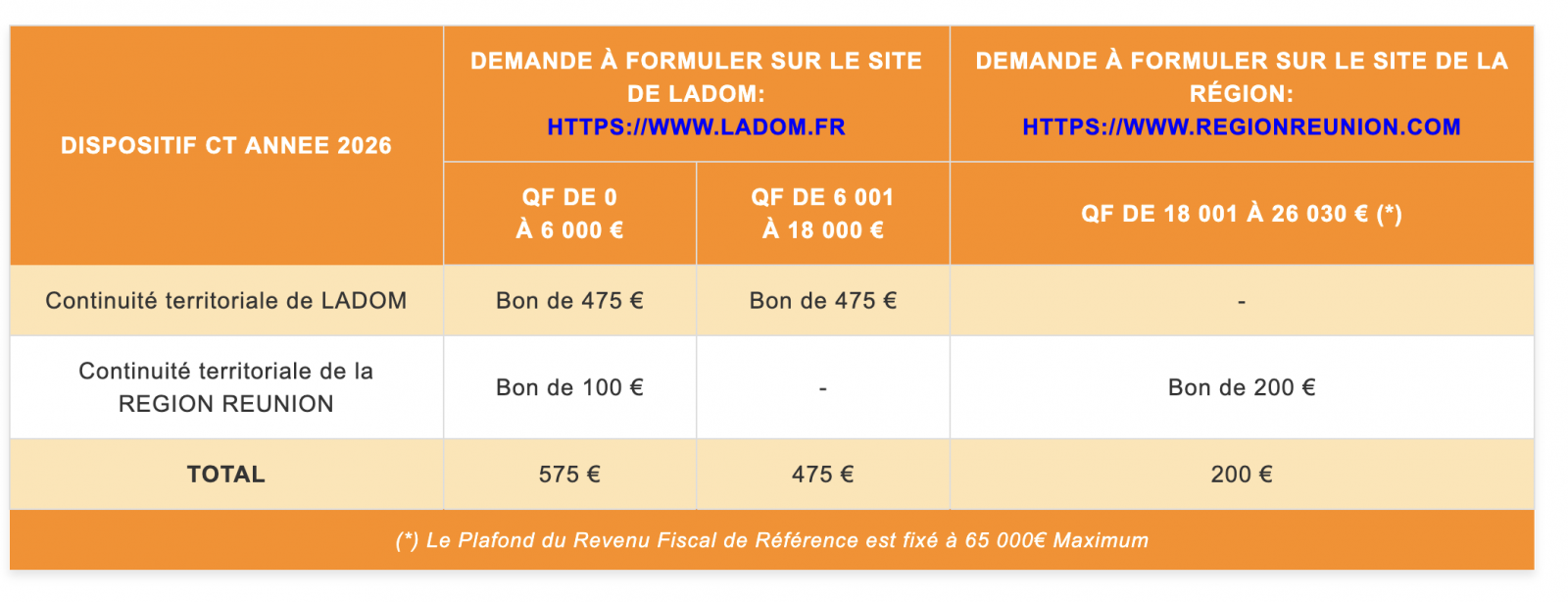 Pour tous renseignements, contactez le service de la Continuité Territoriale au : 02 62 67 18 95.