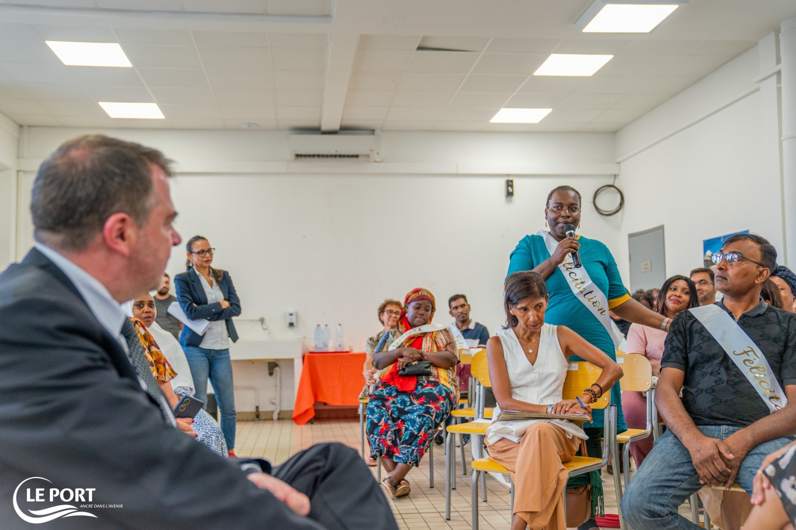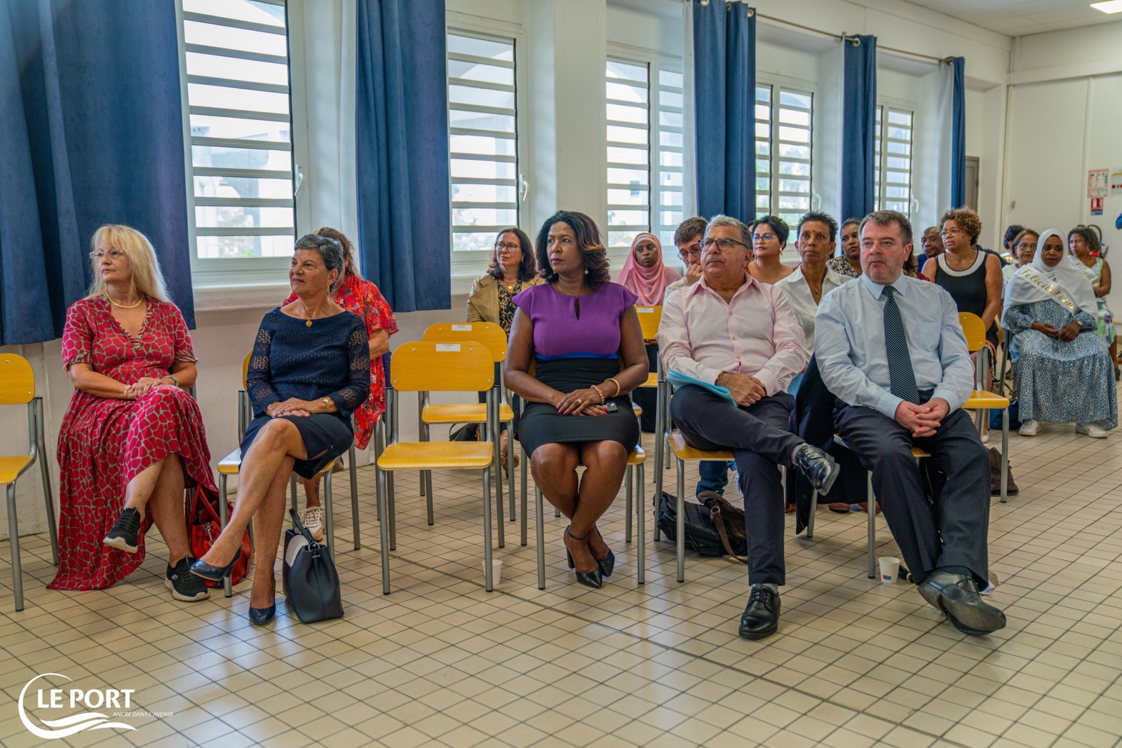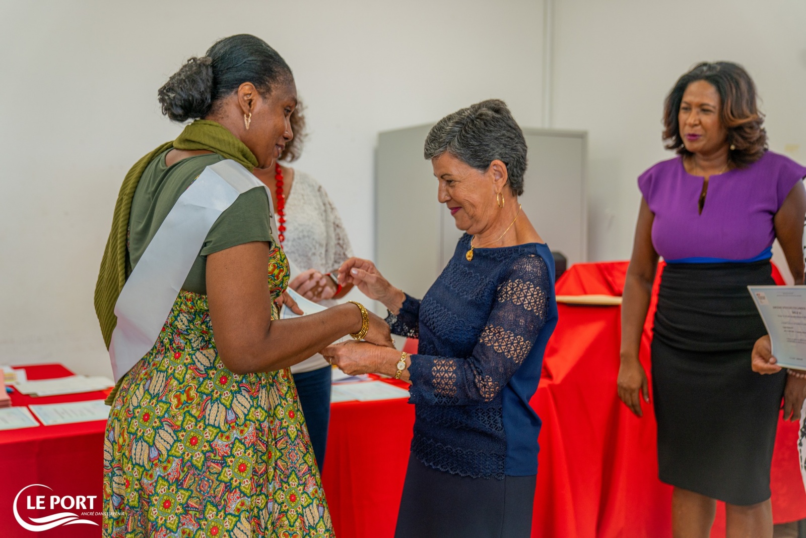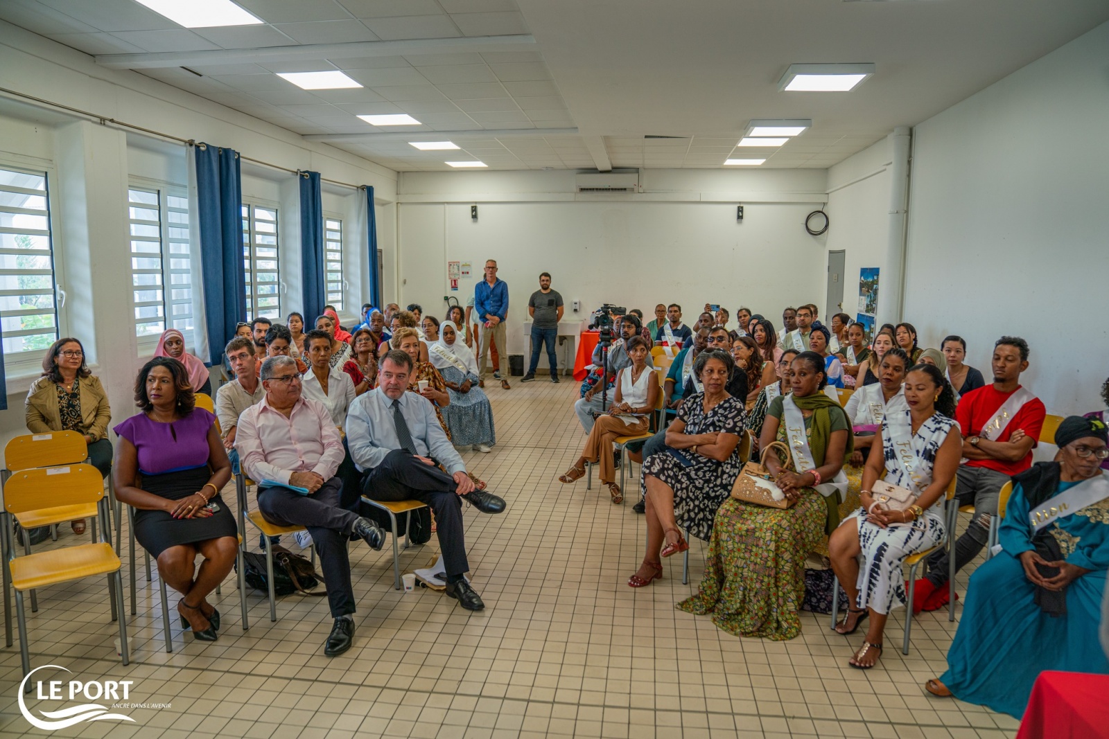 Au lycée Jean Hinglo du Port, 61 adultes, parents d'élèves allophones (dont la langue maternelle est une langue étrangère), ont reçu leurs diplômes d'études en langue française (DELF) des mains du recteur Pierre-François Mourier et d'Annick Le Toullec, adjointe au maire du Port. (Photos : mairie du Port)