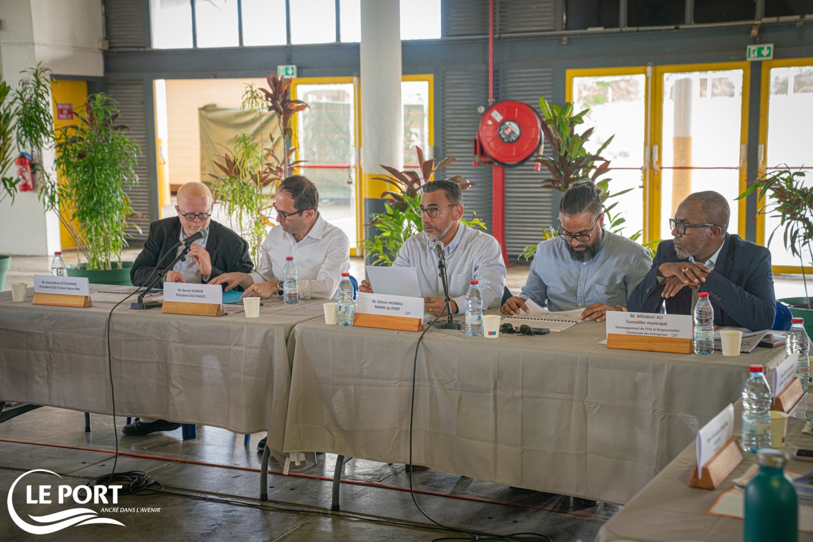 Ce mercredi 22 avril 2026, à la Halle des Manifestations, Benoît Hamon, ancien ministre et président d'Économie Sociale et Solidaire France (ESS), a été accueilli au Port par le maire Olivier Hoarau en présence des élus de la ville, des représentants de l’Entreprise à But d’Emploi (EBE) et des salariés. Nous partageons le communiqué de la ville du Port ci-dessous. (Photos : ville du Port)