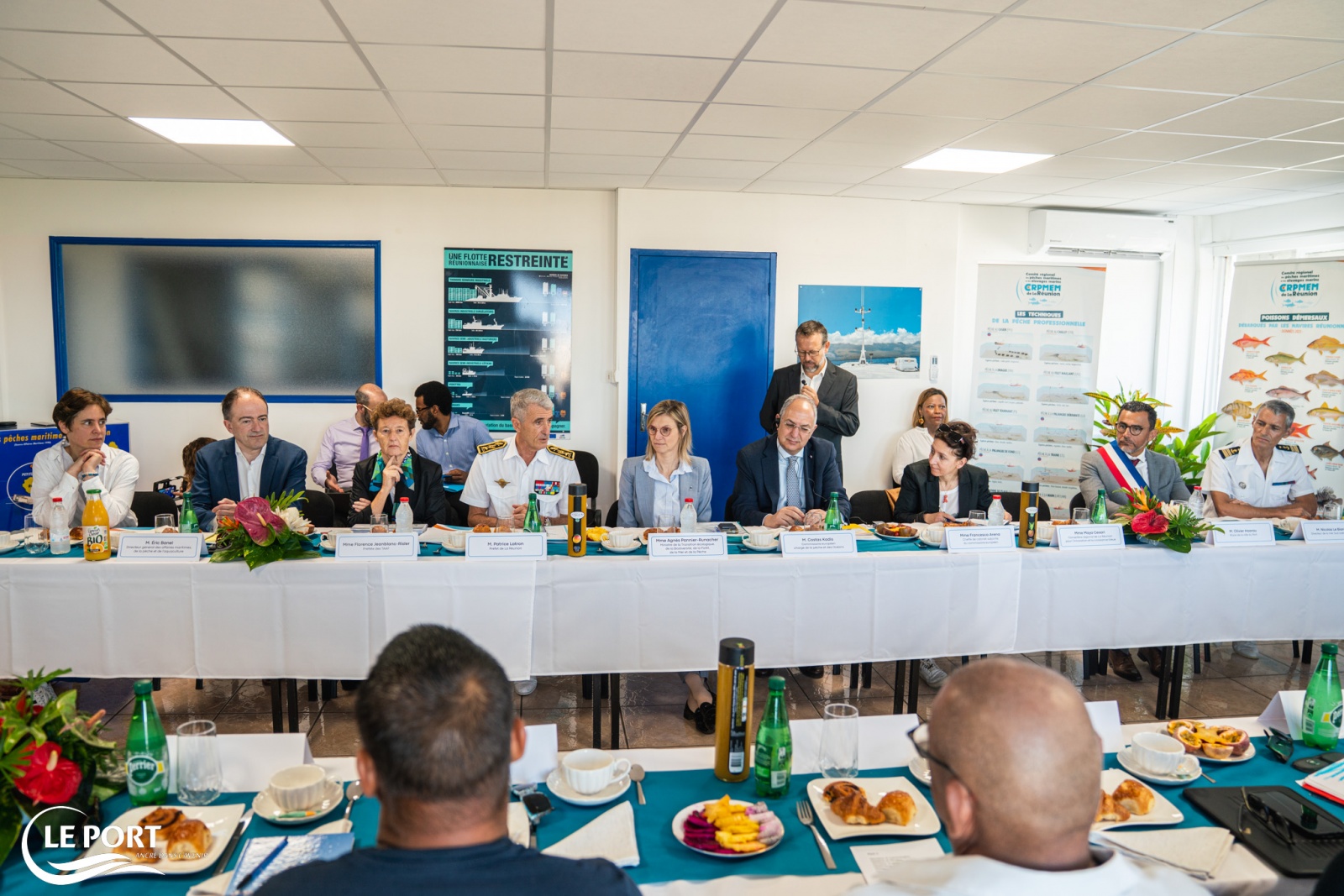 Pour son dernier jour à La Réunion, ce lundi 14 avril 2025, la ministre de la transition, Agnès Pannier-Runacher, a été accueillie au Port par le maire Olivier Hoarau. Elle a participé à une réunion de travail sur le renouvellement de la flotte de pêche, aux côtés du Comité régional des pêches maritimes et des élevages marin et du commissaire européen de pêche Costas Kadis, avant de visiter la société Réunimer et le patrouilleur Osiris II. Des élèves de l’École d’apprentissage maritime et du lycée Léon de Lépervanche étaient également présents. Nous publions le post ci-dessous. (Photo : la ville du Port).