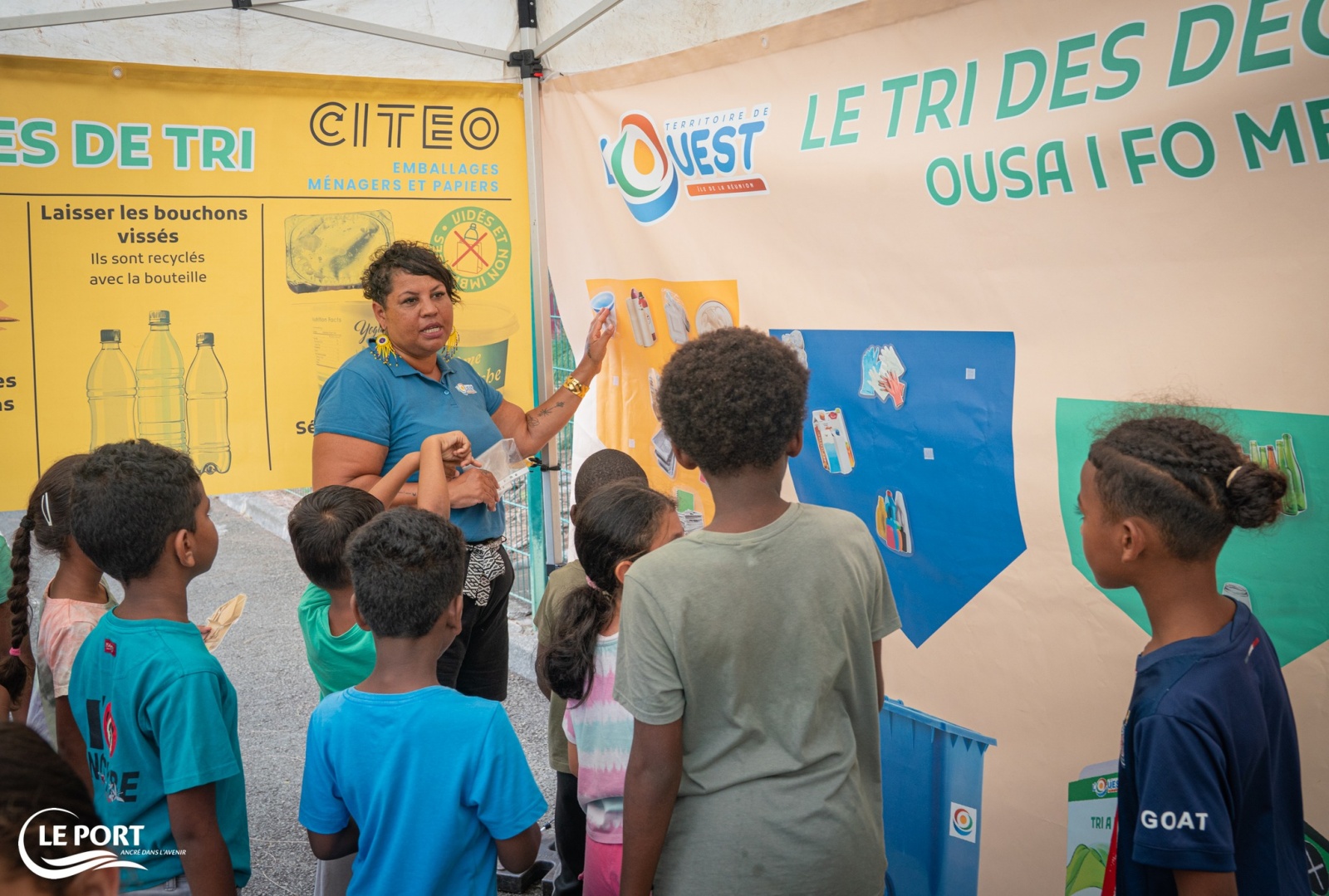 Les petits portois ont participé à un atelier de sensibilisation au tri des déchets proposé dans les centres de loisirs par le Territoire de l'Ouest. Temps d'échange et jeu pédagogique ont rythmé cette journée. Les enfants ont pu découvrir les nouvelles consignes de tri et apprendre à mieux identifier les déchets du bac jaune, tout en s'amusant. Une action ludique et éducative pour adopter les bons gestes dès le plus jeune âge. Menée dans le cadre du déploiement des nouvelles consignes de tri appliquées depuis début janvier, cette intervention a permis de sensibiliser les enfants de 6 à 12 ans à l’aide de dispositifs et de supports pédagogiques adaptés. Nous partageons la publication de la ville du Port. (Photo : ville du Port)