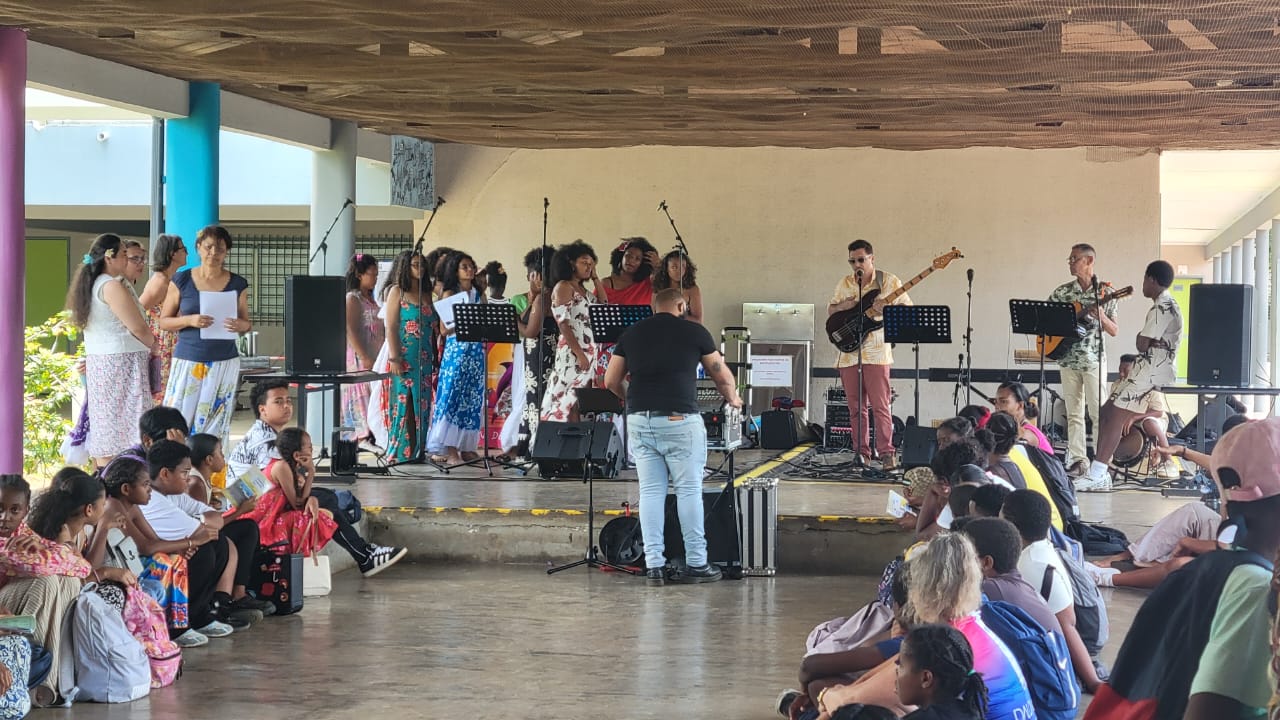 L’après-midi a été marqué par un temps fort musical avec un concert de maloya réunissant élèves et adultes, véritable moment de cohésion et de valorisation du travail collectif. La surprise est venue de l’intervention de FG Lucas, artiste révélé par The Voice, dont la prestation et l’échange avec les élèves ont suscité enthousiasme et inspiration.